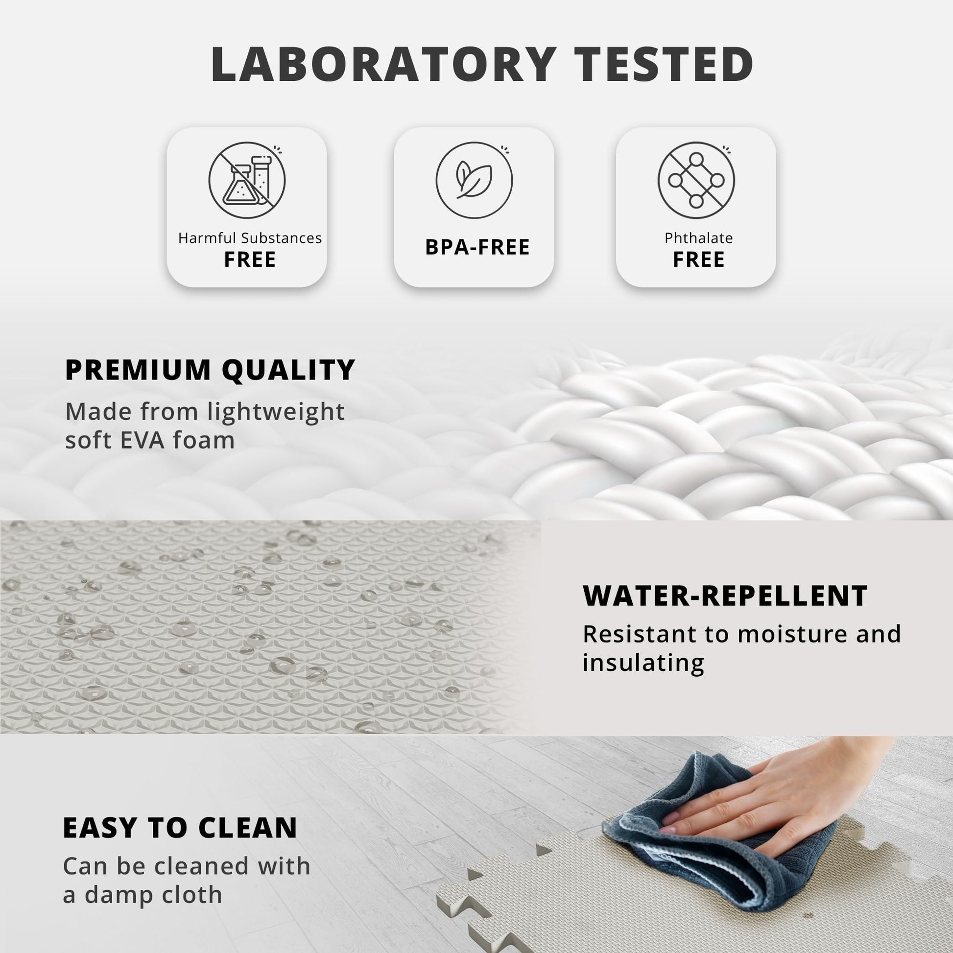 - ๐ช ๐๐๐๐-๐ค๐จ๐๐๐๐ง๐ฌ, ๐๐จ๐ฅ๐๐๐๐, ๐ฅ๐๐๐๐๐๐๐ - the highly compressed, environmentally friendly, non-toxic EVA foam with anti-slip surface is perfect as floor layering for fitness and gym spaces, under sports equipment, work spaces, garages, basements and more. The mat's premium lightweight material also makes it noise- and impact-dampening, warmth-insulating, waterproof, long-lasting and easy to clean with soap and water.