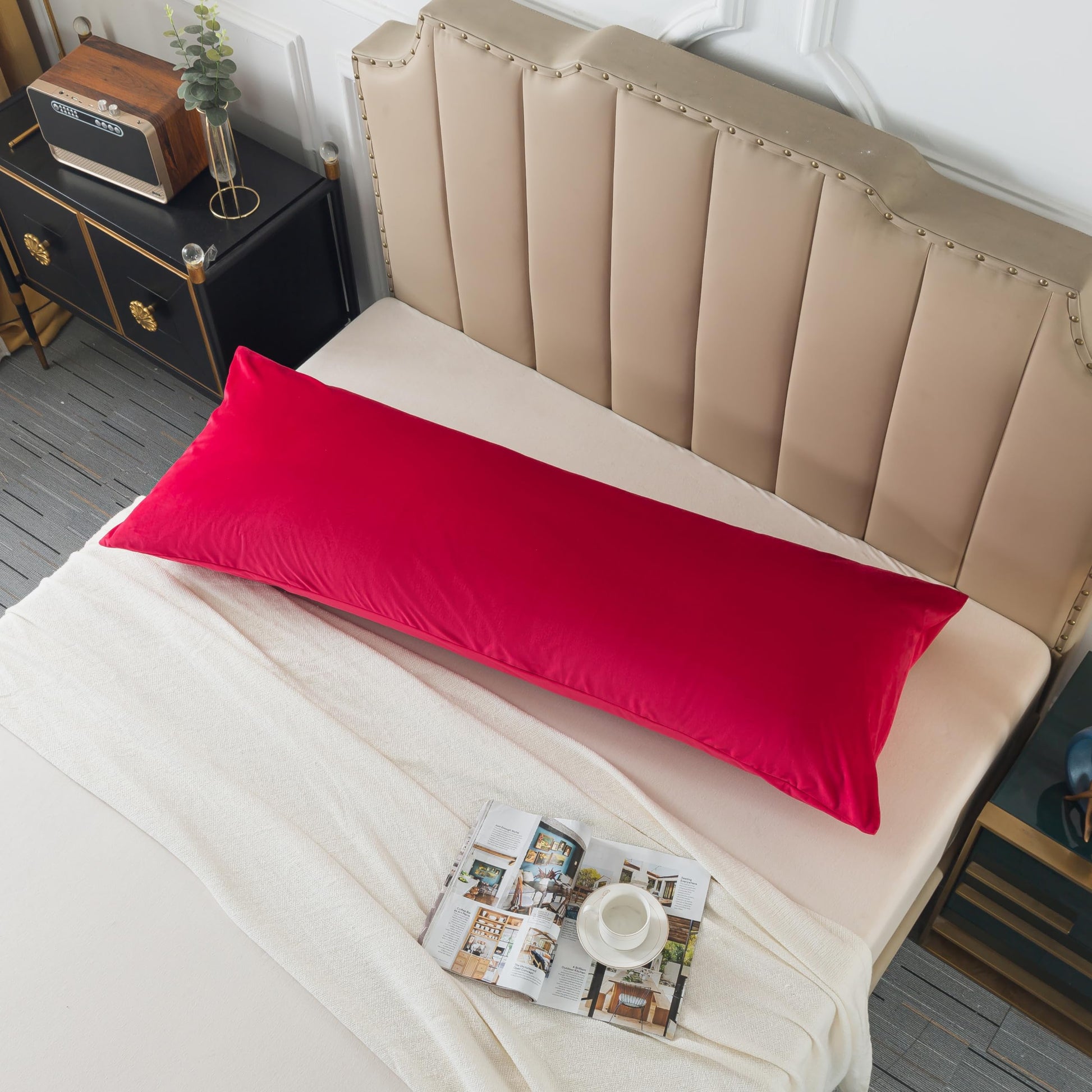 H HOUSEHOLD 1 Pack Velvet Body Pillow Cover, Soft and Cozy Luxury Fuzzy Flannel 20x54 Inches Long Pillowcase with Zipper (Body Size 20x54 Inches, Red)