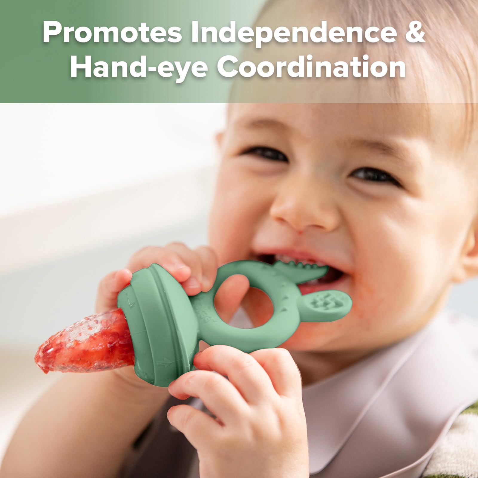- PROMOTES INDEPENDENT FEEDING: Designed with an easy-to-hold ring suitable for tiny hands, our Feeder fosters self-feeding skills and enhances hand-eye coordination.