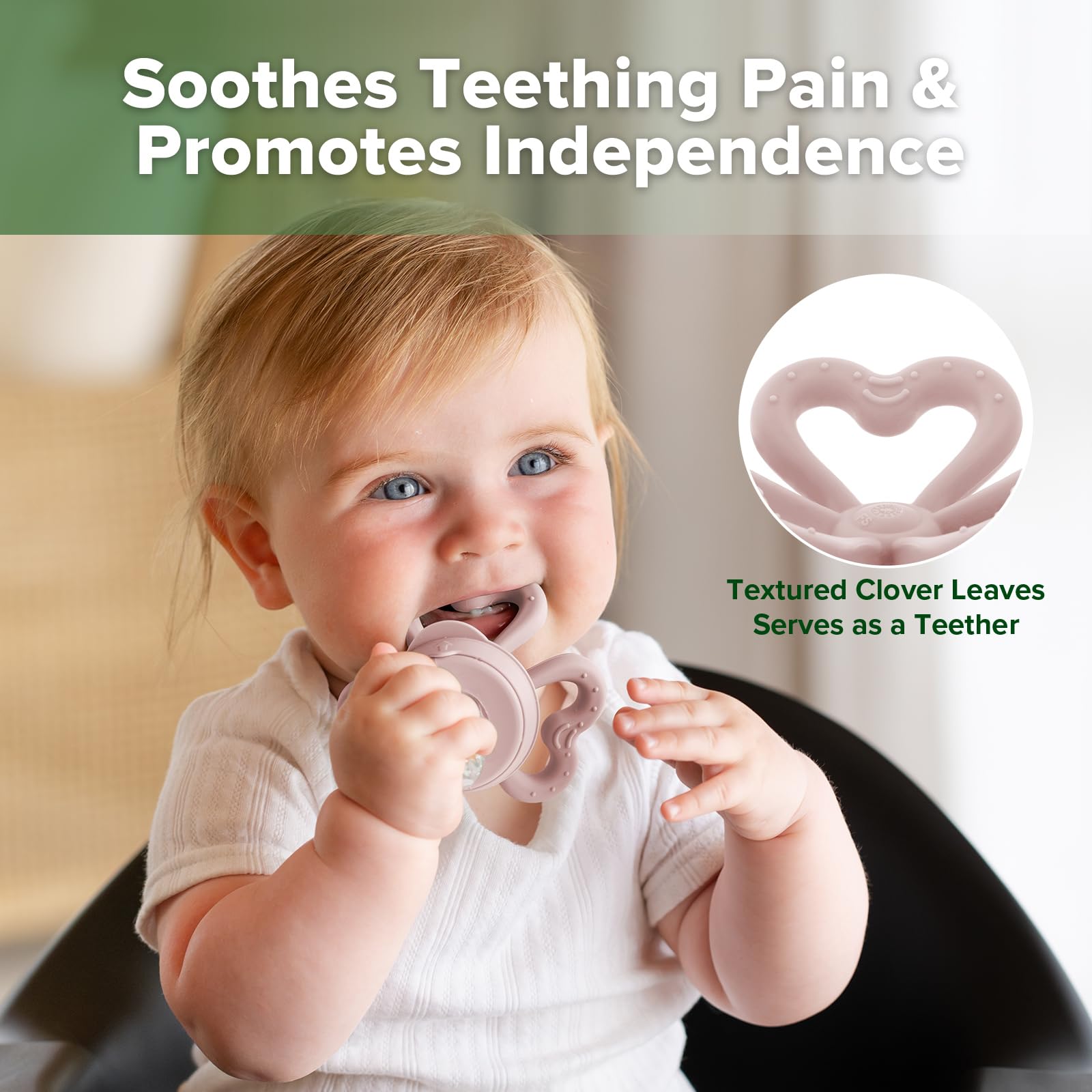 Haakaa Clover Baby Fruit Feeder Teether & Mini Freezer Nibble Tray – BPA-Free Silicone Breastmilk Popsicle Mold for Baby Teething Relief & Self-Feeding, 4M+(Blush)