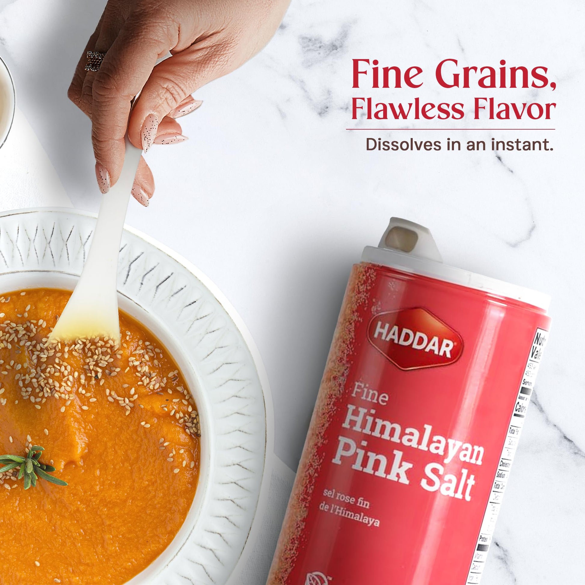 Details: Bring the taste and benefits of the Himalayas to your kitchen with Haddar Pink Himalayan Salt. This 100% pure and natural rock salt is harvested from ancient mines, rich in minerals that not only enhance flavor but also support a healthy lifestyle. The fine grain crystals dissolve quickly, making this versatile salt perfect for cooking, baking, seasoning, or even as a finishing touch to elevate your dishes. Packaged in a convenient, shaker-top canister, it stays fresh and mess-free while providing precise control for your culinary creations. Add a subtle burst of flavor and a touch of elegance to your meals with this premium pink Himalayan salt—your new favorite kitchen essential!