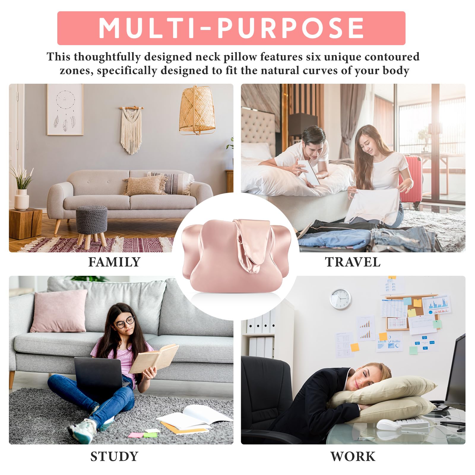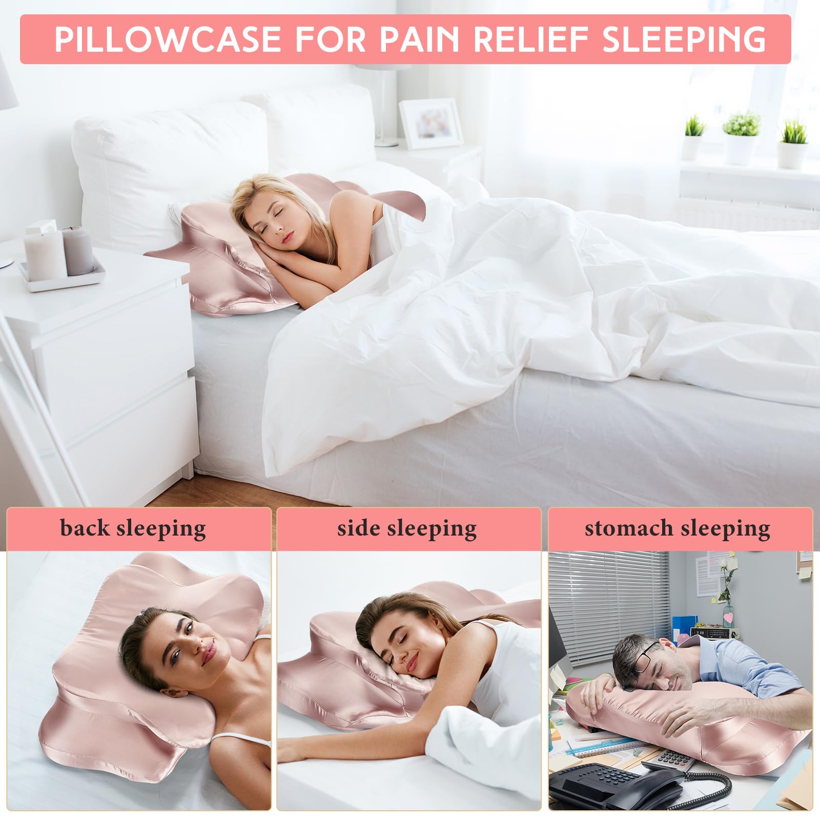 Hahafelt Cervical Neck Pillowcase (Only Pillowcase) Satin Pillow Cover with Zipper Ergonomic Contour Pillow Cover for Side Back Stomach Sleepers(Coral,Queen Size)