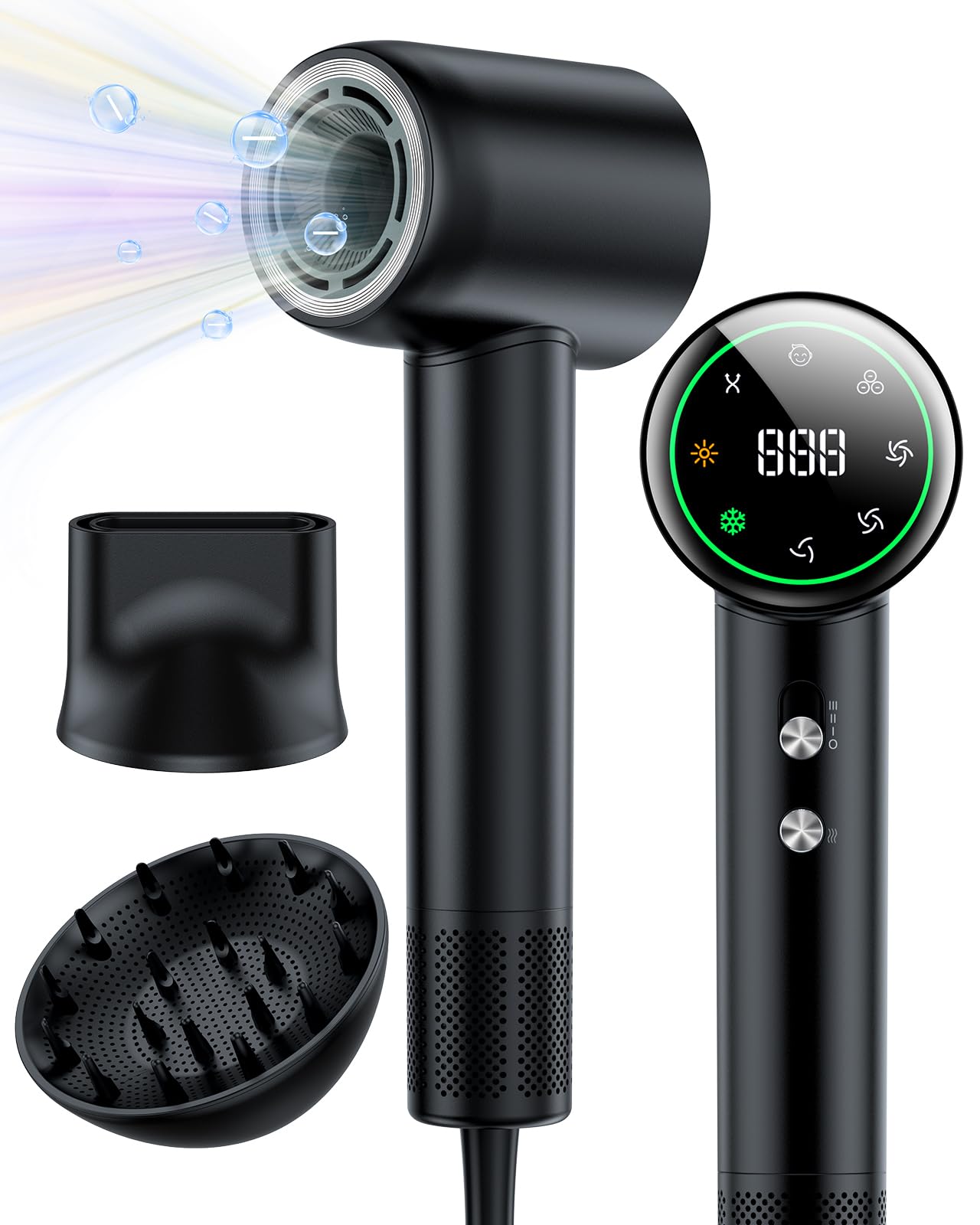 - 【Versatile Styling & Portable】: The compact professional hair dryer comes with a 360° magnetic rotating diffuser and concentrator, suitable for various hair types and styles (curly, straight, bob, layered.), meeting your diverse styling needs for each unique look. Additionally, portable hair dryer with diffuser is designed ergonomically, weighing lighter than a bottle of cola, minimizing arm fatigue with its lightweight design, ensuring ultimate portability for you to effortlessly create styles