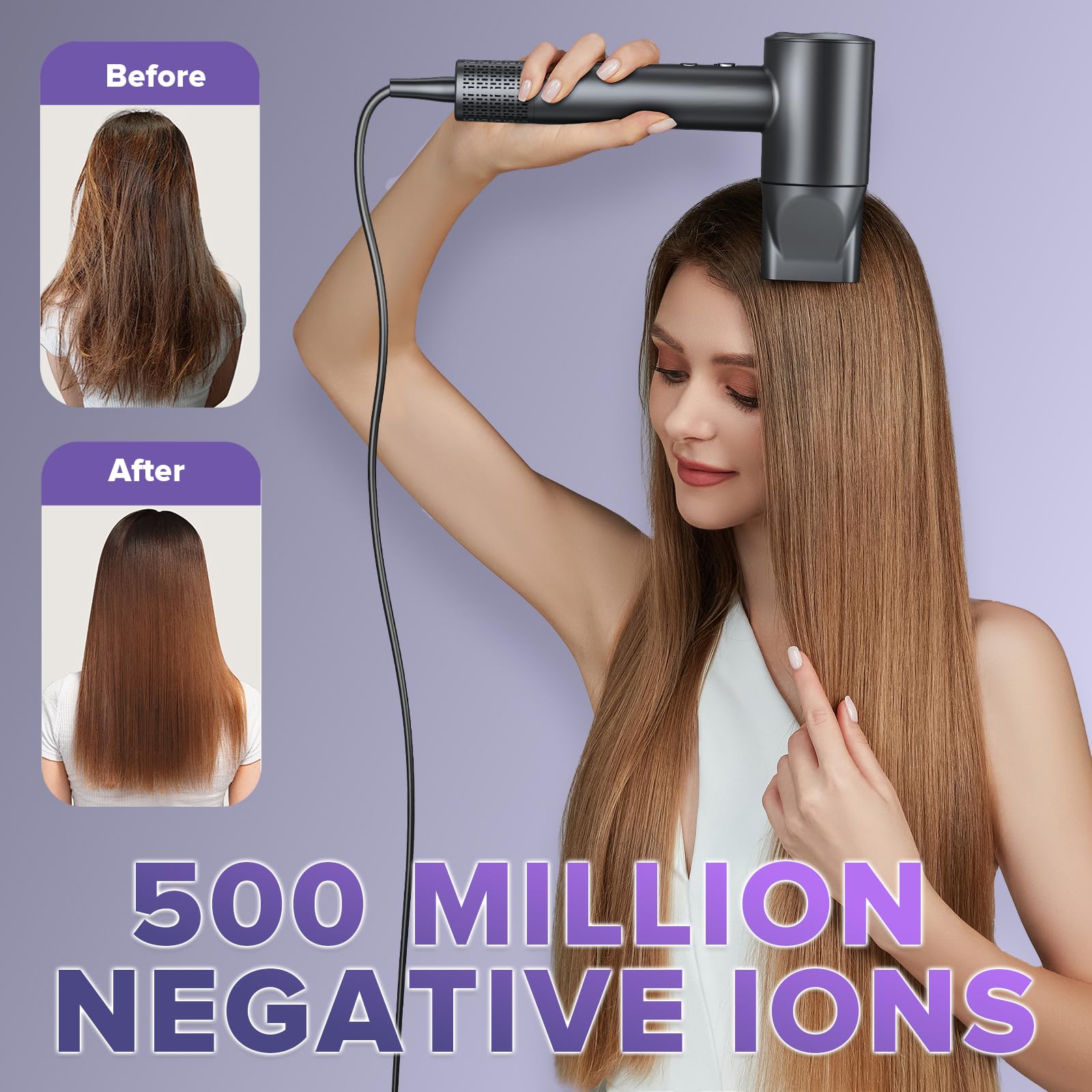• 💨 Advanced Ionic Technology for Enhanced Styling: Wave goodbye to frizz! Our dryer is equipped with advanced ionic technology that releases millions of negative ions to smooth your hair and lock in moisture. Silky, shiny hair with reduced static. This dryer gives you professional styling effects every time, keeping your hair healthy-looking and manageable all day long!