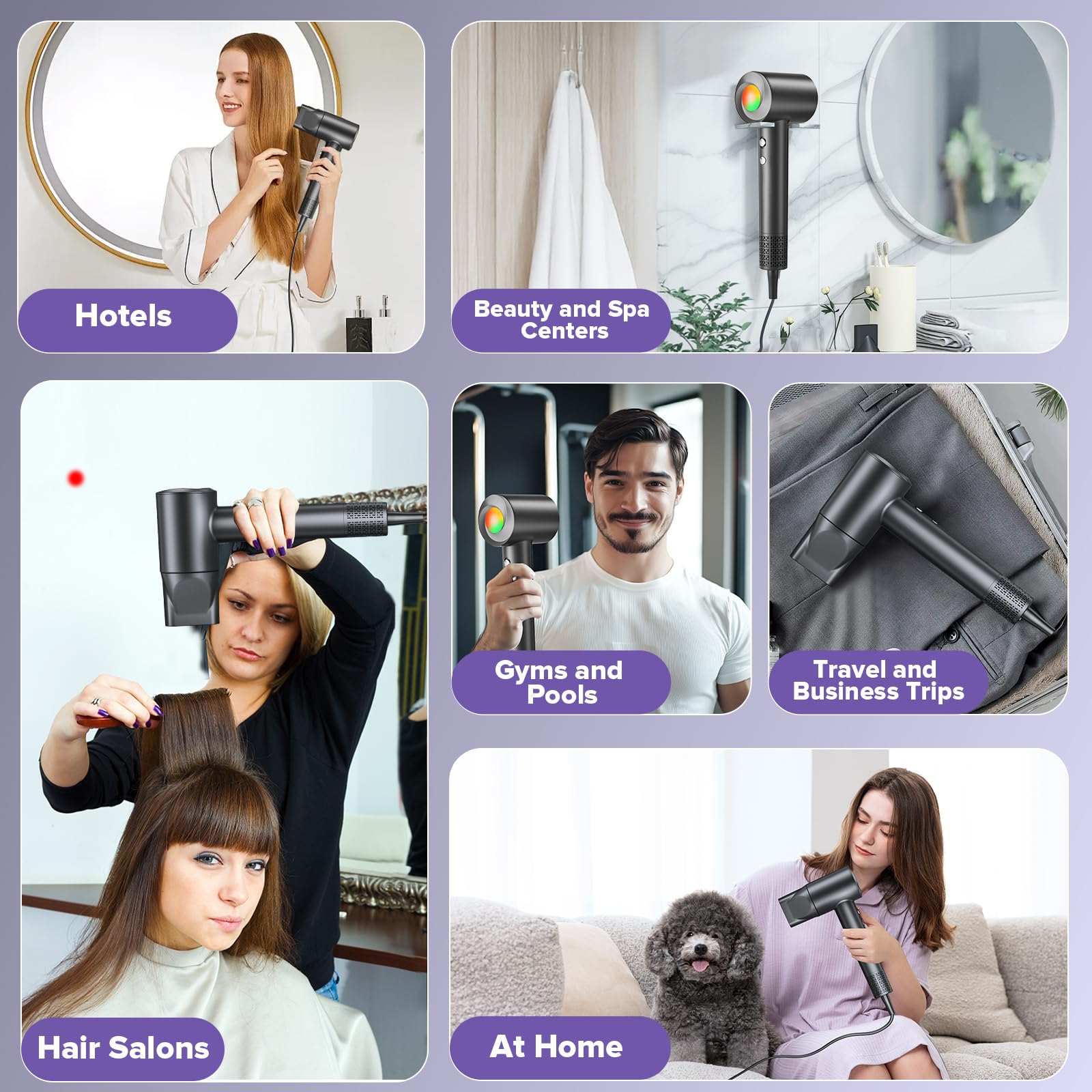 • 🛫 Portable & Quiet Design: No more noisy drying sessions! This lightweight, quiet hair dryer is perfect for home use and travel. Its noise-reducing technology ensures a peaceful drying experience, so you can style your hair without disturbing your surroundings. Compact and easy to carry, it's a travel-friendly option for those always on the move!