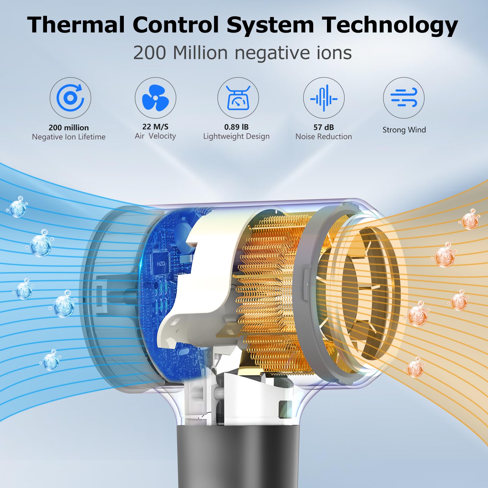 - Negative Ion Hair Dryer:Hairdryer uses advanced negative ion technology, the ion generator can produce 200 million ions per cubic centimeter, neutralizing static electricity, preventing hair damage reducing static electricity, locking in moisture, leaving your hair soft and shiny and easy to care for.