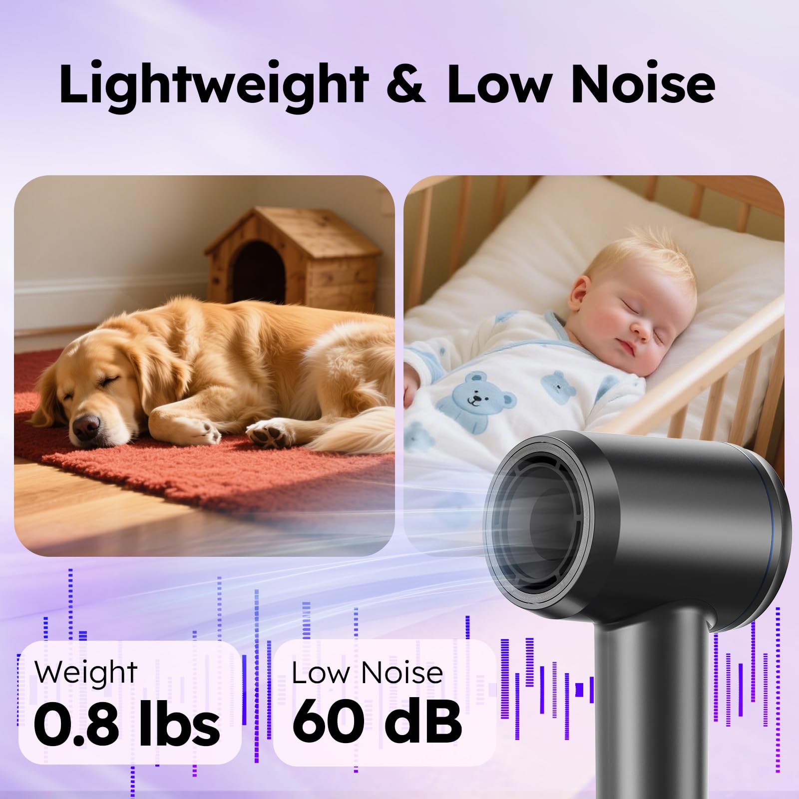 - 【Safe Lightweight & Quiet Design】love best professional quiet blow dryer adopts a noise reduction design, comes with a safety-focused US ALCI plug for better protection. It weighs only 0.85 lb/386g and has a comfortable grip. Comes with 360° rotating magnetic nozzle, making it the perfect travel or home companion for ladies and comfortable experience even during extended use