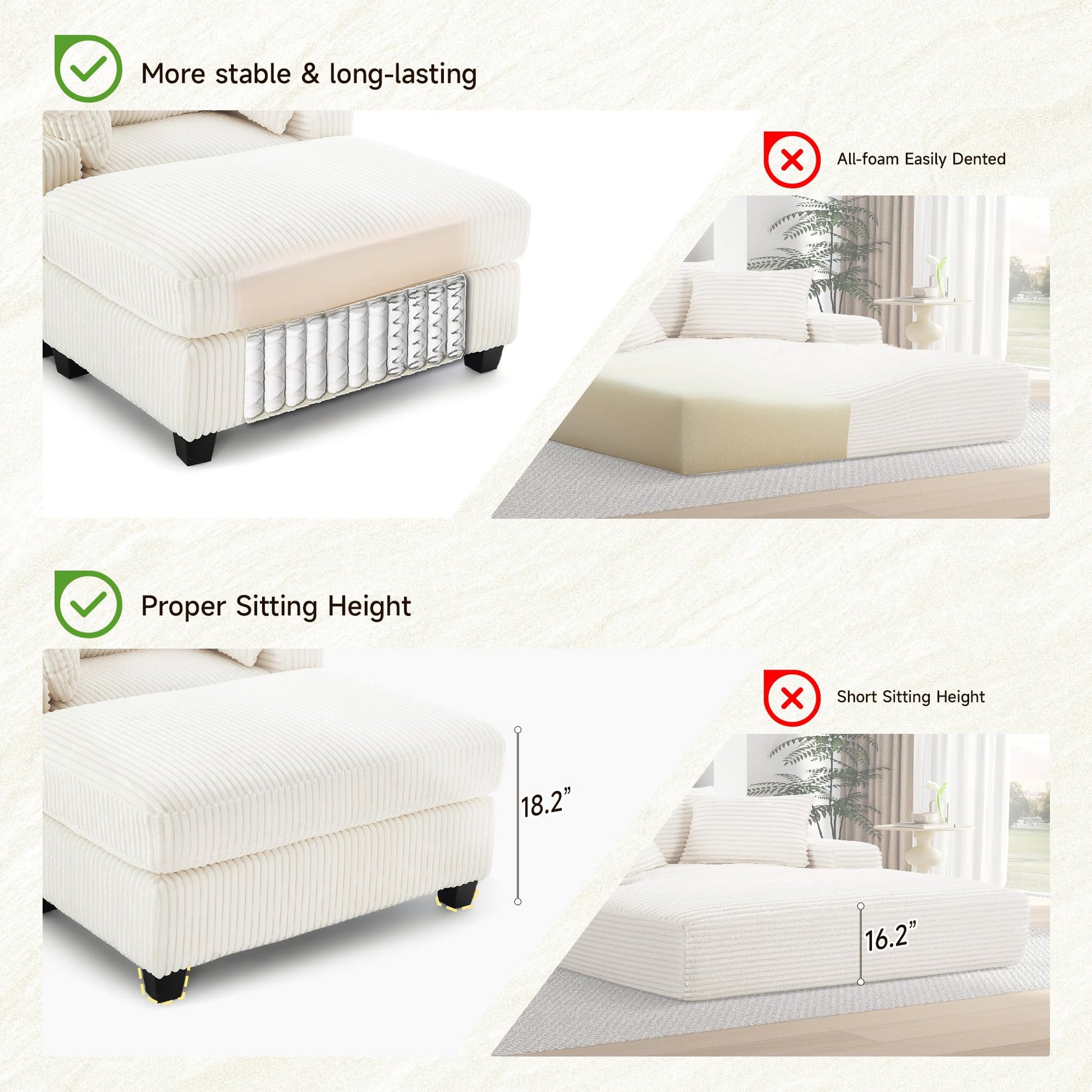Hanherry 57.6" D Chaise Lounge Chair Indoor with Ottoman, Corduroy Lounge Sleeper Sofa Chair, Comfy Reading Chair with Double-Sided Armrest and Lumbar Support for Bedroom, Living Room, Office(Beige)
