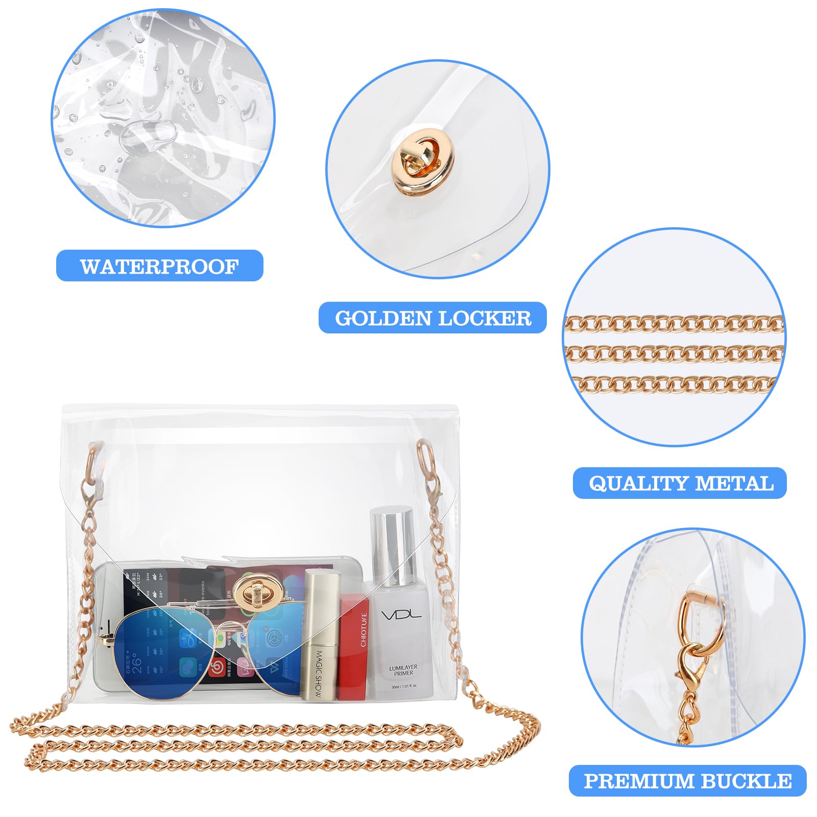 HAOGUAGUA Clear Purse for Women, Clear Bag Stadium Approved, See Through Clear Handbag for Concerts Sports Events (Gold)