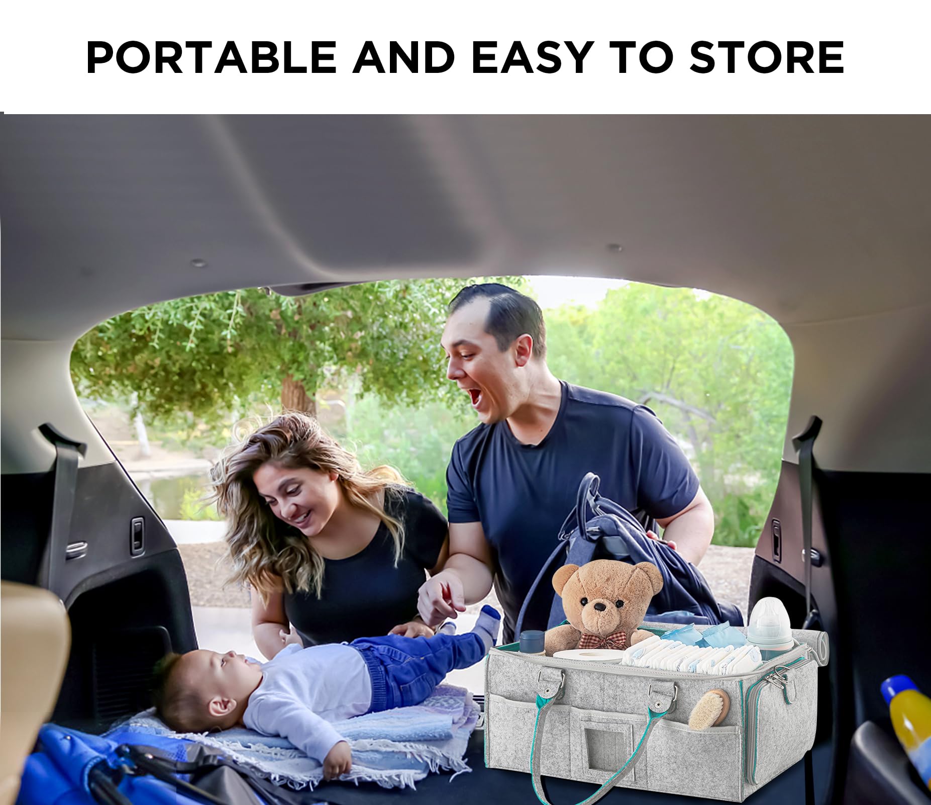 - MULTI-SITUATION USE: This Baby Diaper Caddy can not only be used at home to store baby items, but also can be used as a car diaper caddy or simply a car caddy. Foldable, lightweight and portable, ideal for taking your child out for a picnic or travelling.