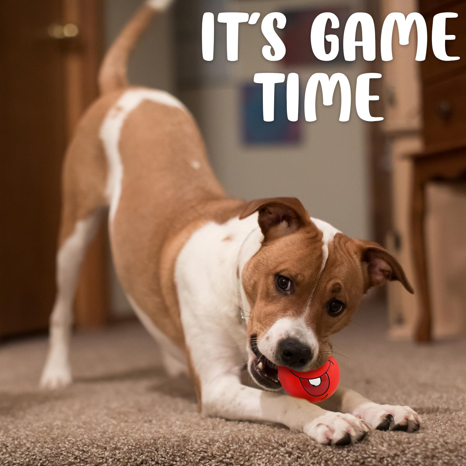 - These squeaky balls are perfect for small and medium dogs, puppy, and more. less than 24~50lb. Made with Non-Toxic latex rubber.