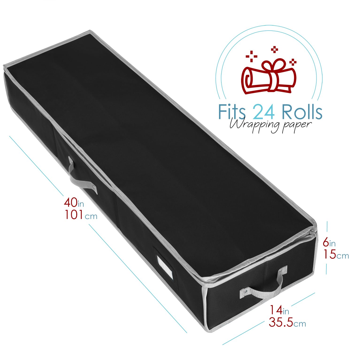 - Gift Wrap Storage - the ultimate solution for Christmas wrap paper storage, accessories, and supplies with the premium wrapping paper storage box! Keep an entire gift wrap collection neat and organized all in one place! Dimensions: 14” x 40” x 6”.