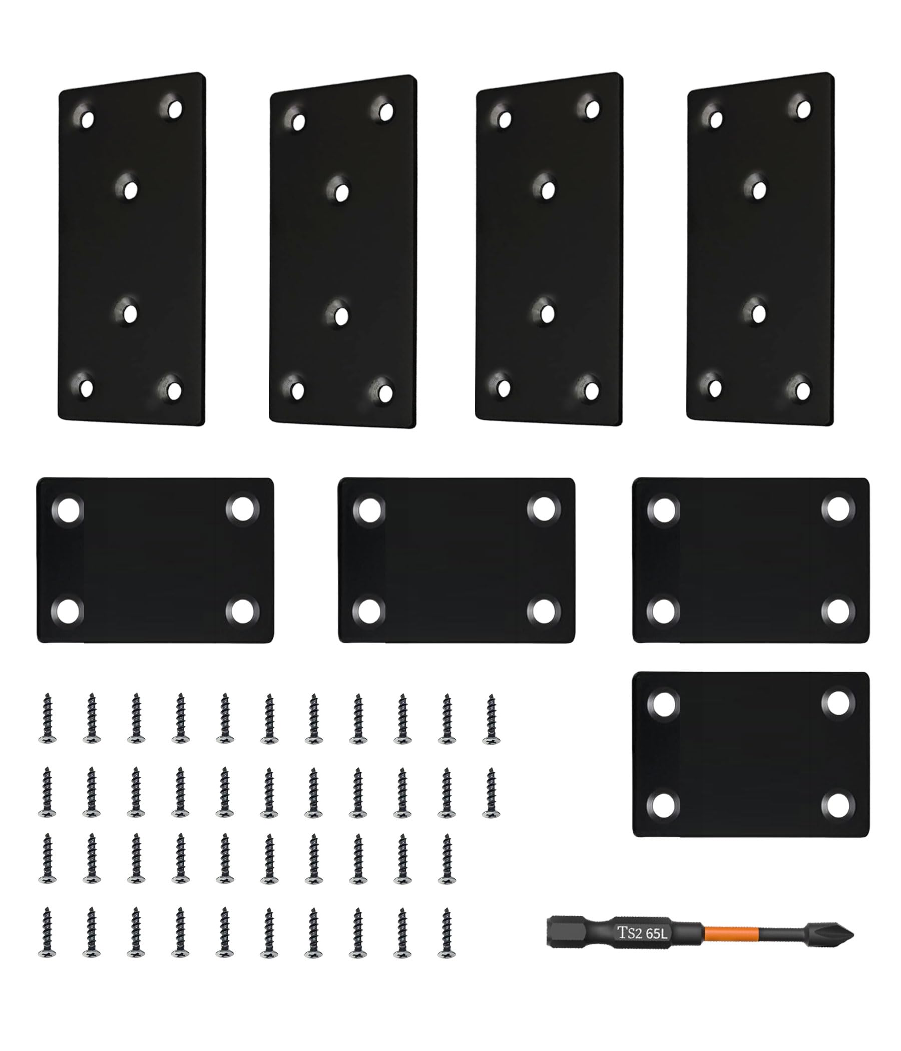 Heavy Duty Flat Mending Plate – 8 Pack 3.15x1.57'' & 2.36x1.49 ''Rust-Resistant Stainless Steel, Easy Installation for Furniture & DIY Projects Matte Black Finish (8, Black,3.15x1.57'' & 2.36x1.49 '')