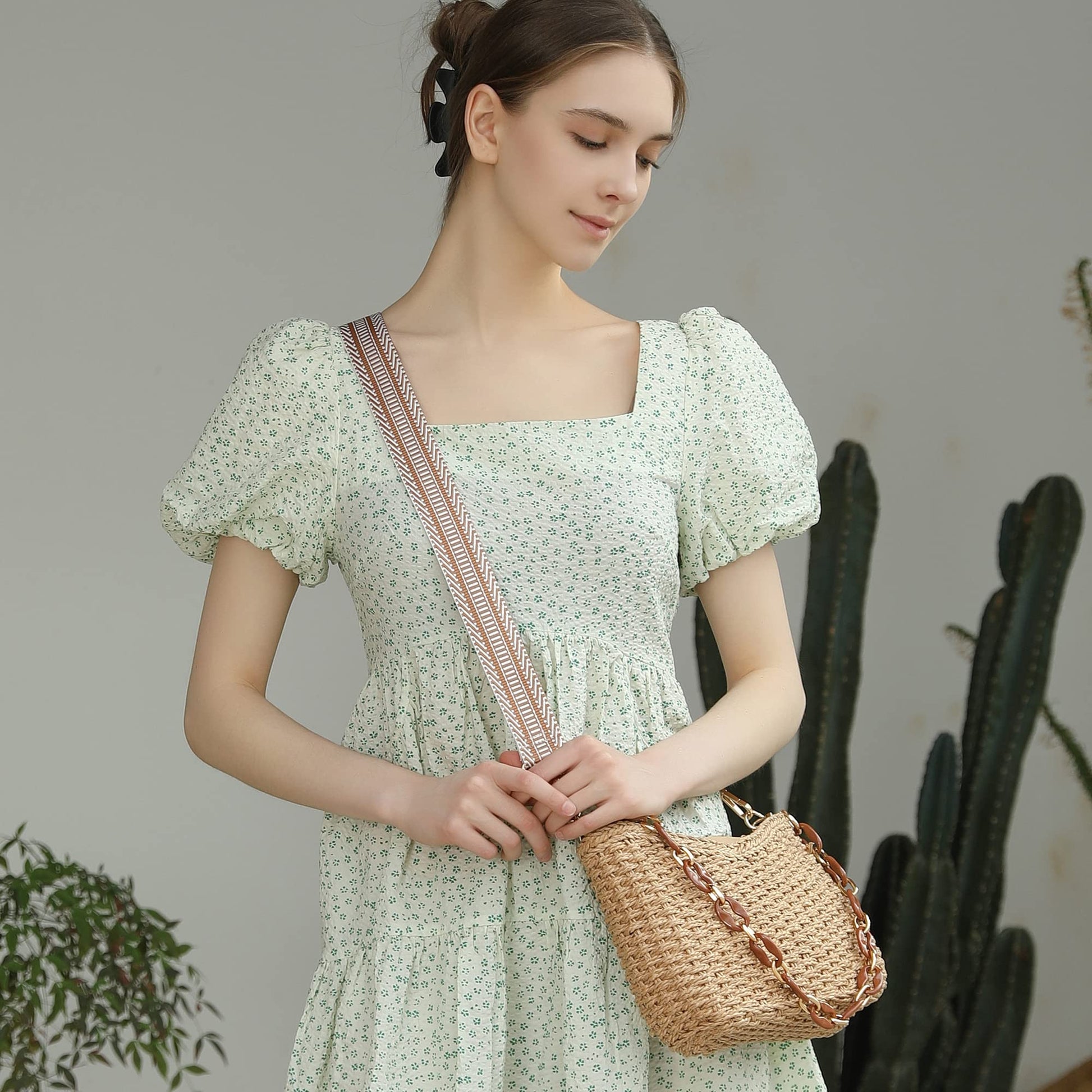 - [Straw Crossbody Purse with 2 Removable Multicolor Strap]: The design with replacement colorful shoulder web wide guitar strap and chain strap makes the retro pocketbooks distinctive. It can be use a hand bags, clutch, underarm bags, shoulder bags or cross body bags according the actual need.