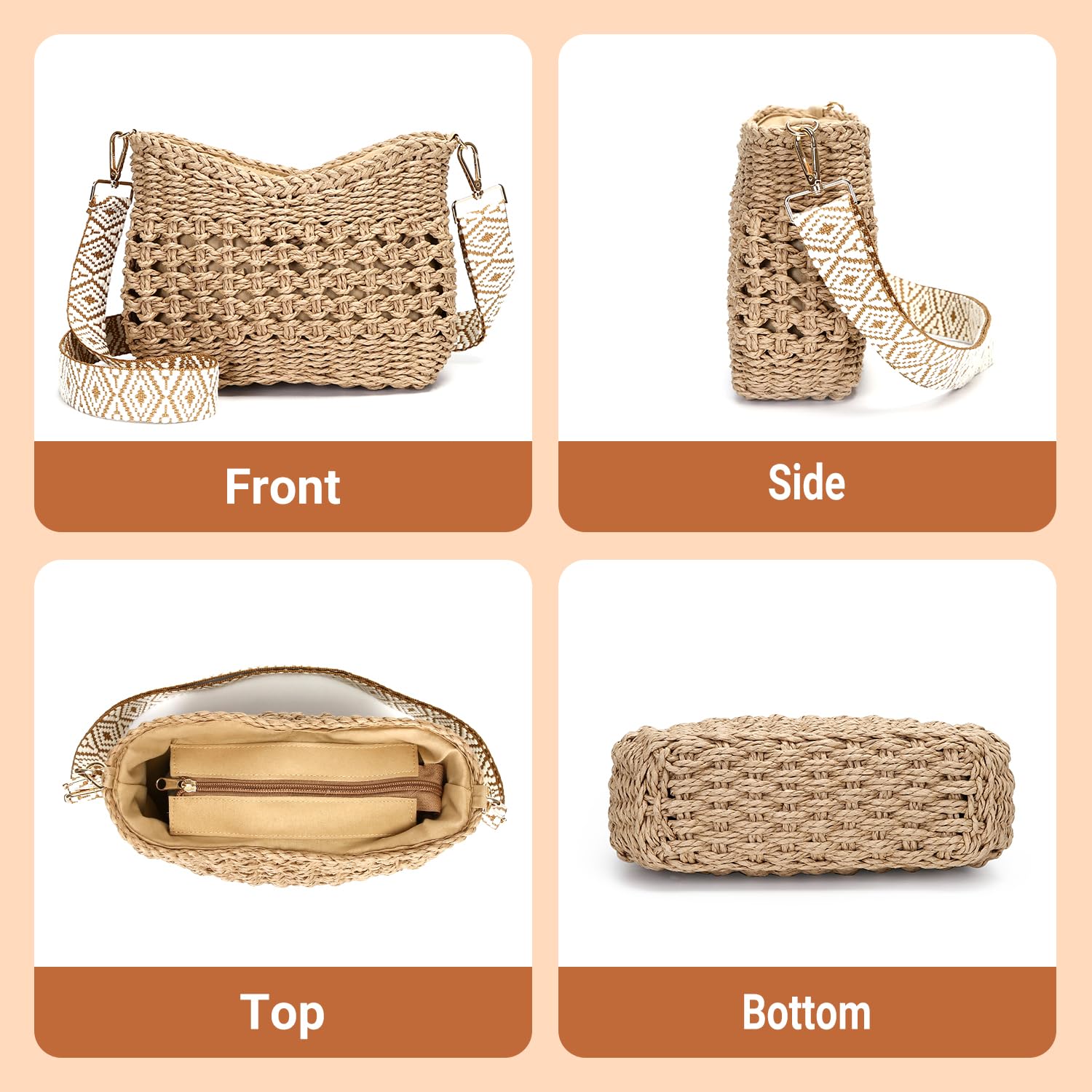 - [Perfect Choice for Sea Beach Vacation]: The designer crochet rattan crossover bag are not only the best choice for seaside holidays, but also a novel and unique one that will attract a lot of attention in the street. Suitable for many occasions such as summer beach, resorts, travel, Journey, Picnic, shopping or casual daily.
