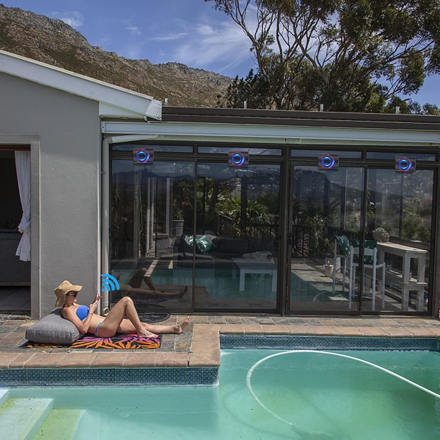 - 【Bluetooth Compatible 】This outdoor speakers set comes with a 68 Amplifier Box and is compatible with Bluetooth audio streaming, supporting connection to 4 speakers (1 TWS) and remote music playback from a smartphone, tablet, laptop or TV with up to 65 feet line of sight, producing clear sound. Ideal for personal indoor, outdoor, home use or outdoor DJ parties.