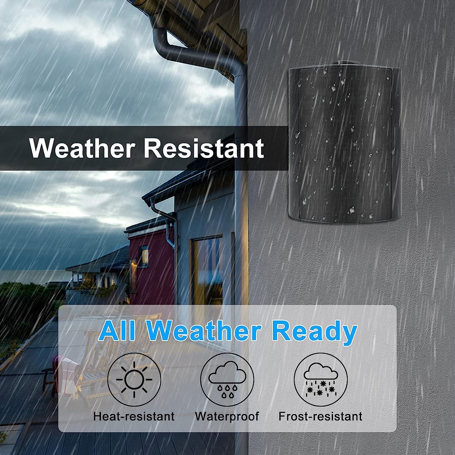 - 【Multiple Applications】The enclosure of this pair of speakers is composed of a PP mica plus rubber surround and a 1.0' polymer ball top tweeter, which is IP44 Marine grade water and weather proof and can withstand extreme cold/hot temperatures. The interior walls of the cabinet are thick and equipped with rigid supports to prevent unwanted cabinet resonances, thus providing clean and clear sound at all levels. Suitable for yard, garage, basement or living room.
