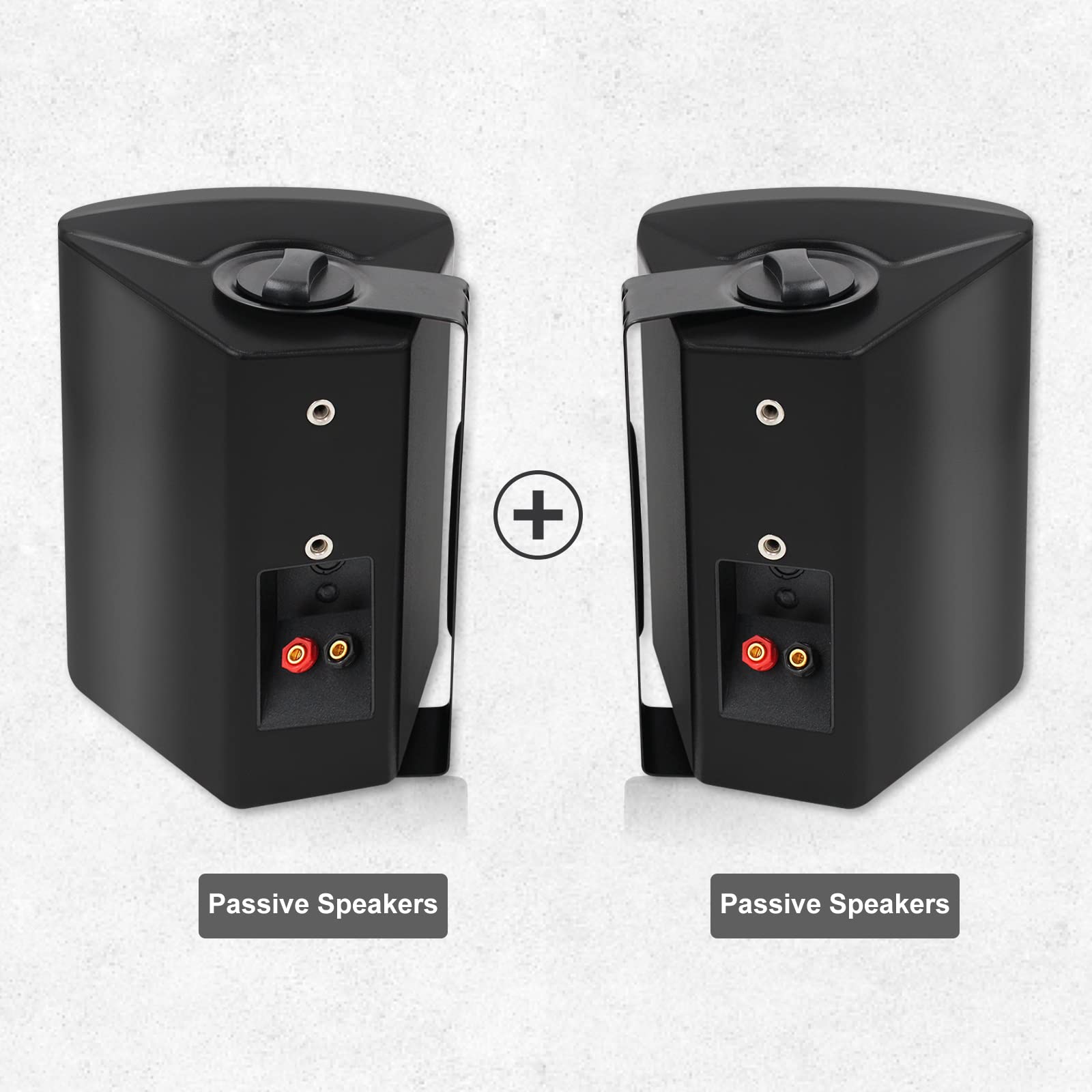Herdio 5.25 Inches Passive Outdoor Speakers Wired Waterproof, 300 Watts Wall Mount Speakers All Weather for Patio Indoor Deck Countryard (1 Pair, Black)