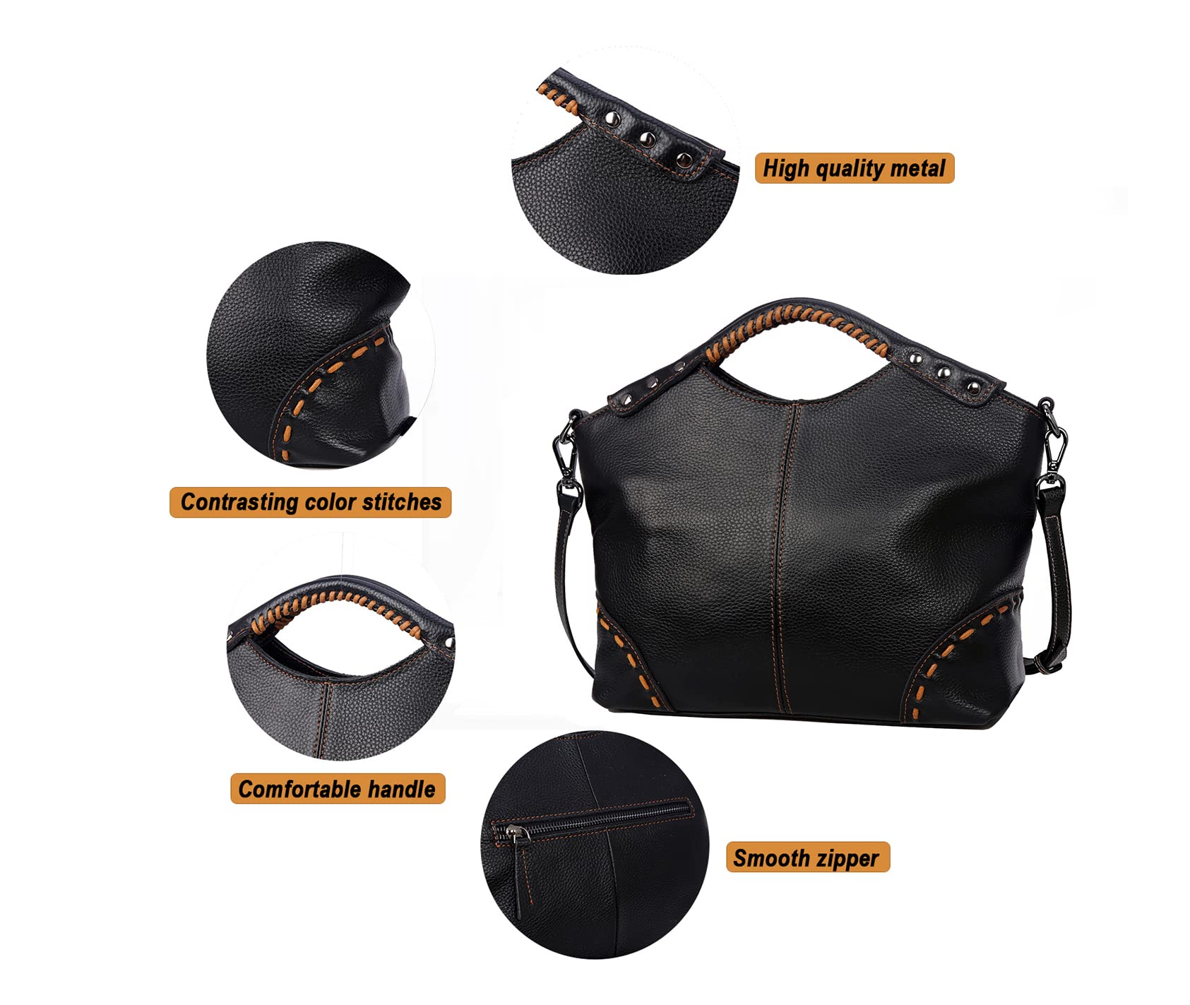 - Inner Pockets: Medium size handbags for women with 2 zipper compartments and 1 open pocket inside for cell phone, keys, lipsticks and other things orderly. And the rear zippered pocket of the leather purse provides easy access to your essentials.