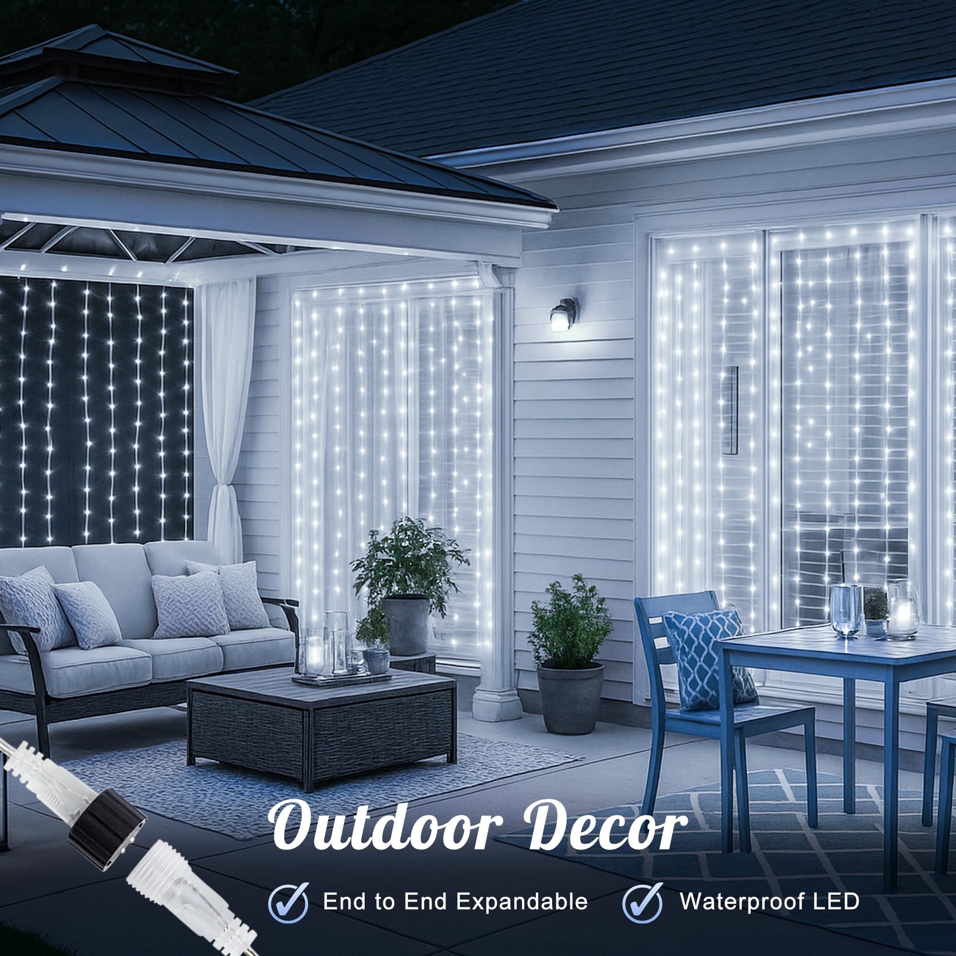 - SIZE & EXTENDABLE: 9.8ft*9.8ft,with 304LED twinkle bulbs; spacing between every LED: 15cm/6in;It can meanwhile connect of 3 curtain lights;and the12ft lead wire length is enough for you to decorate the place where you want.