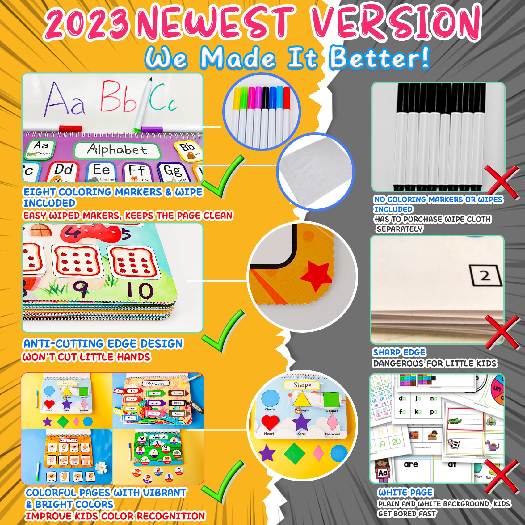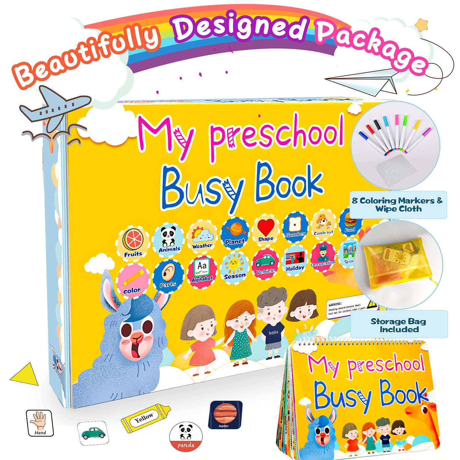 - 【MEGA PACK WITH COLOR PENS】Value pack now comes with color pens, the toy includes 16 daily activity themes like colors, letters, numbers, shapes, size, holiday, and 16 blank themes on the back so kids can draw on them as well