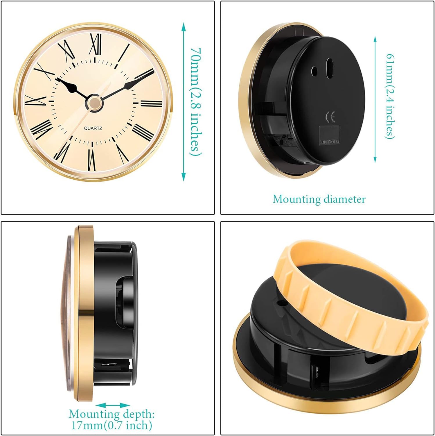 2.8 Inch (70 mm) gold quartz clock insert with Roman numeral and quartz movement Roman numeral clock insert: Clock mechanism features plastic rim and quartz movement, black roman number is easy