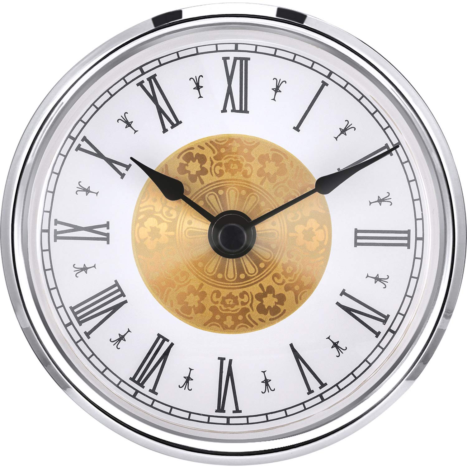 Hicarer 3-1/8 Inch (80 Mm) Mini Quartz Clock Insert Round Clocks Head Insert Roman Number Replacement Movement White Face (Gold Trim)