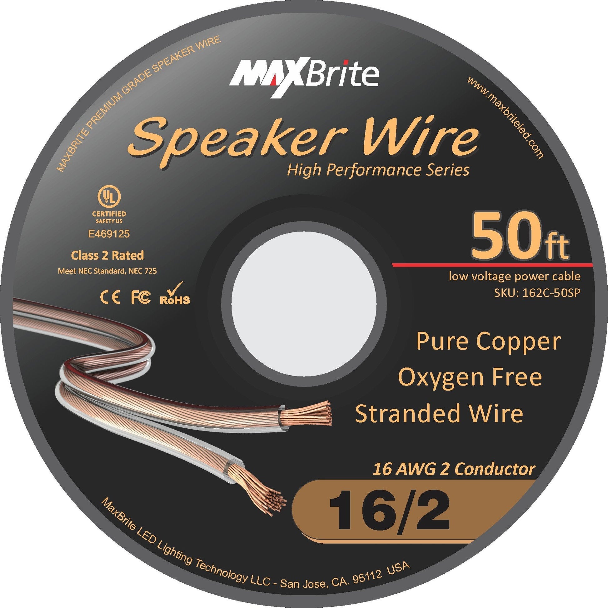Details: MaxBrite PREMIUM QUALITY 16-Gauge Oxygen Free Copper Conductors Speaker Wire