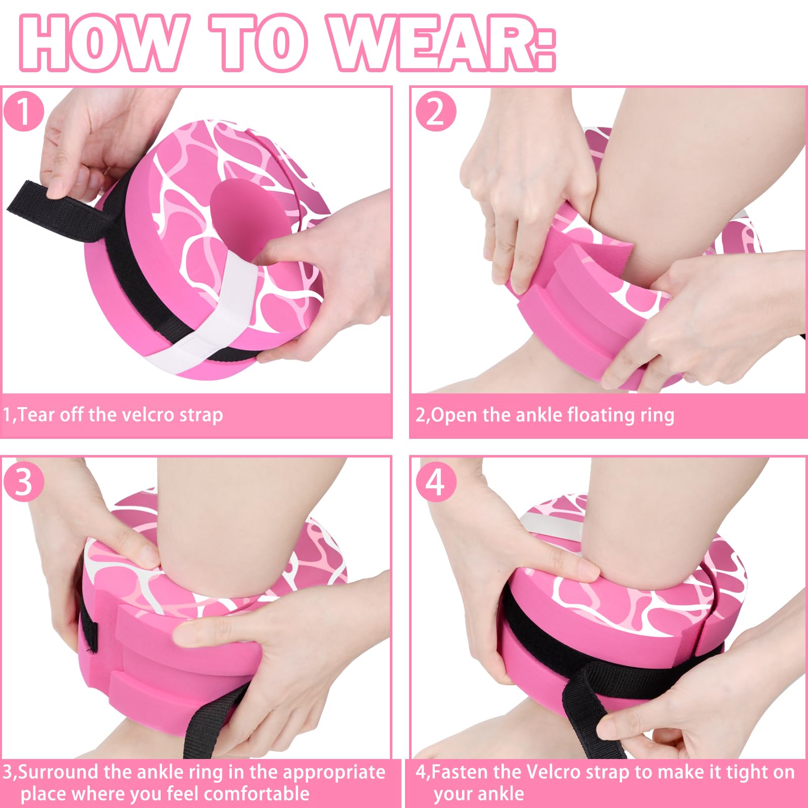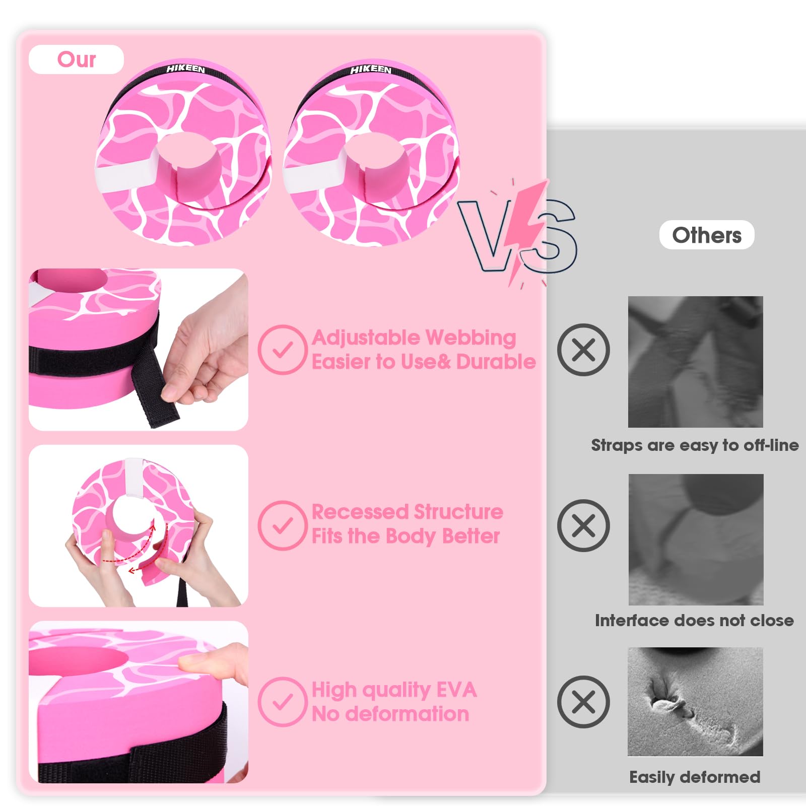 Hikeen Swim Aquatic Cuffs,High-Density EVA Water Aerobics Float Ring Fitness Pool Exercise Weights Set, Water Ankles Arms Belts with Adjustable Float for Swim Fitness Training (Pink)