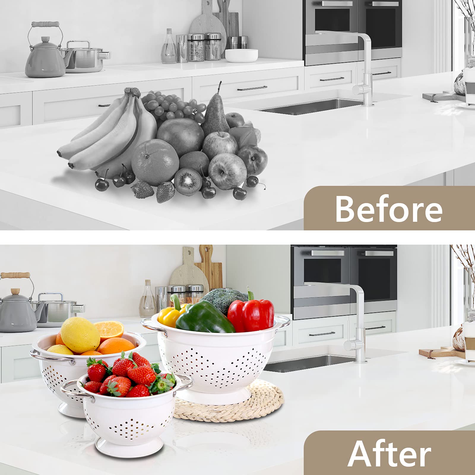 - Beautiful Fruit Basket for the Kitchen: With a glossy pure white exterior and a stylish design, this basket, when filled with colorful fruits, becomes a striking and beautiful decoration for your kitchen