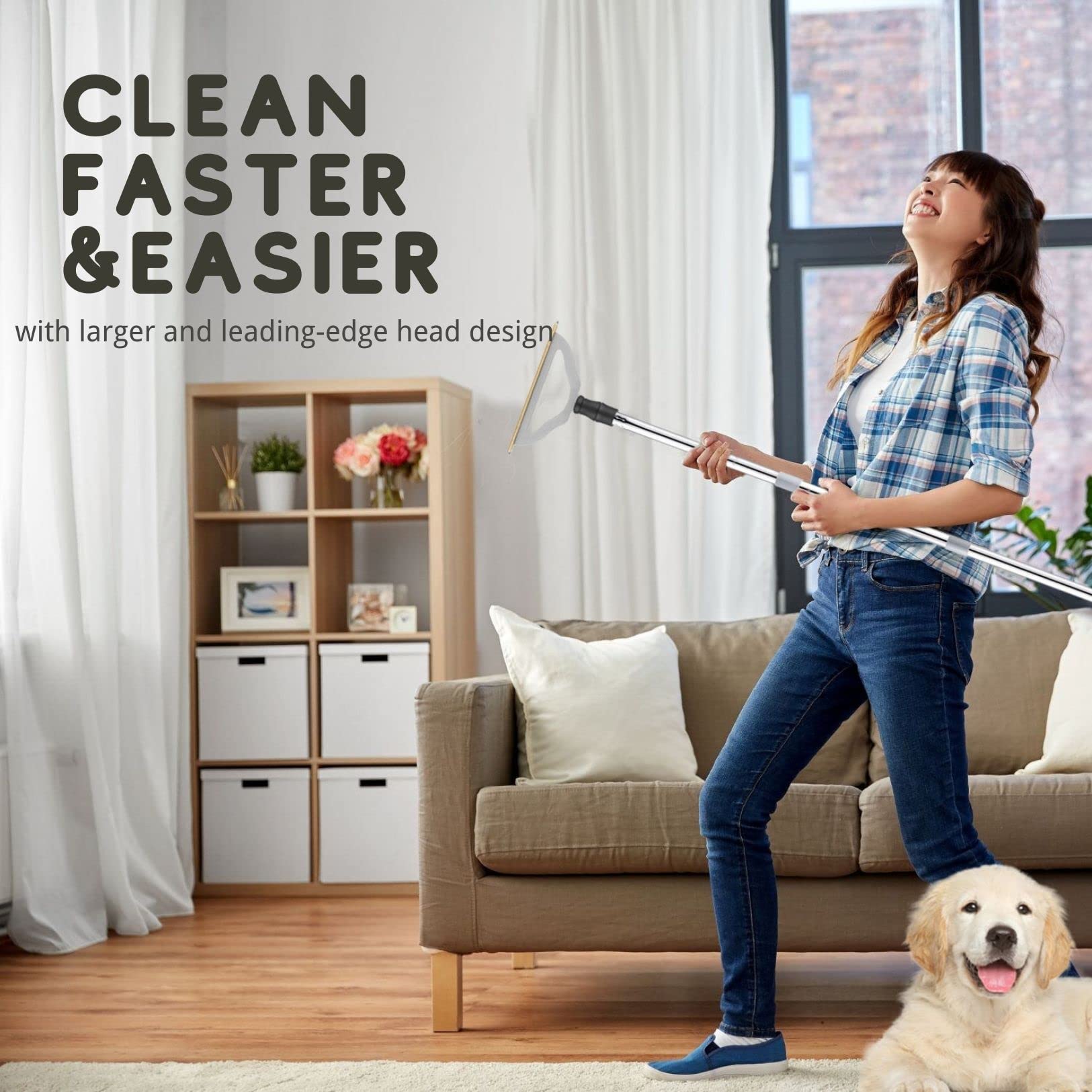 - Saving You from Bending or Crouching Down to Clean — With adjustable long handle, this dog, cat hair remover ensures easy access to hard-to-reach areas, no more back tense or pain. With versatile length options, this pet hair removal broom fits different heights; you can clean different spaces with comfort -- use the full-length handle (up to 47.3”) to scrape fur on large carpet; use 1 handle pole or adding no handle as a handheld rake to clean rugs, car floor, dog mat, cat tree, upholestery, bed, couch etc.