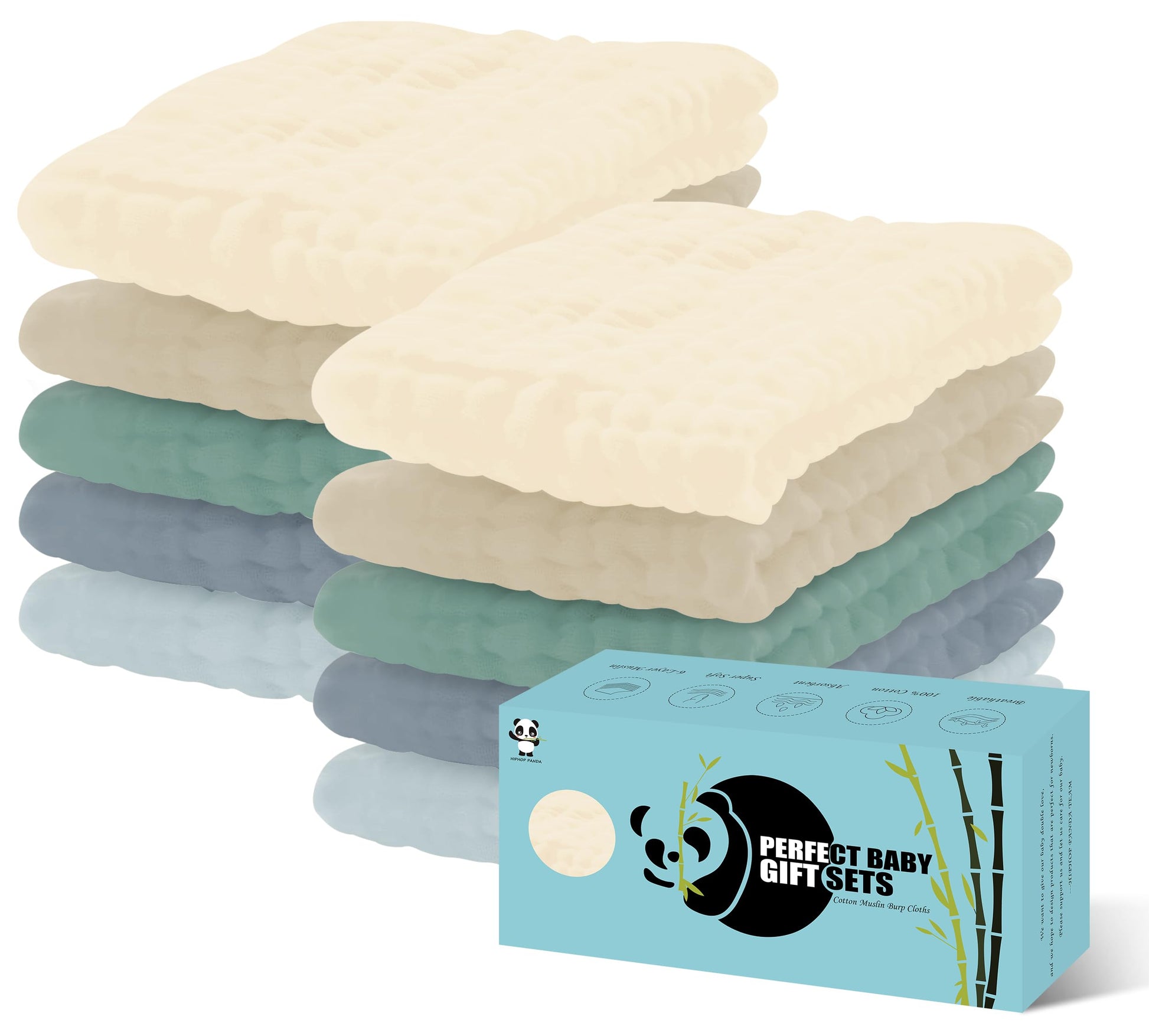 HIPHOP PANDA 10 Pack 6-Layers Muslin Burp Cloths Large - Durable 100% Cotton - Baby Essentials Extra Absorbent and Soft Boys & Girls Rags for Newborn Registry (Brown, 20" X10")