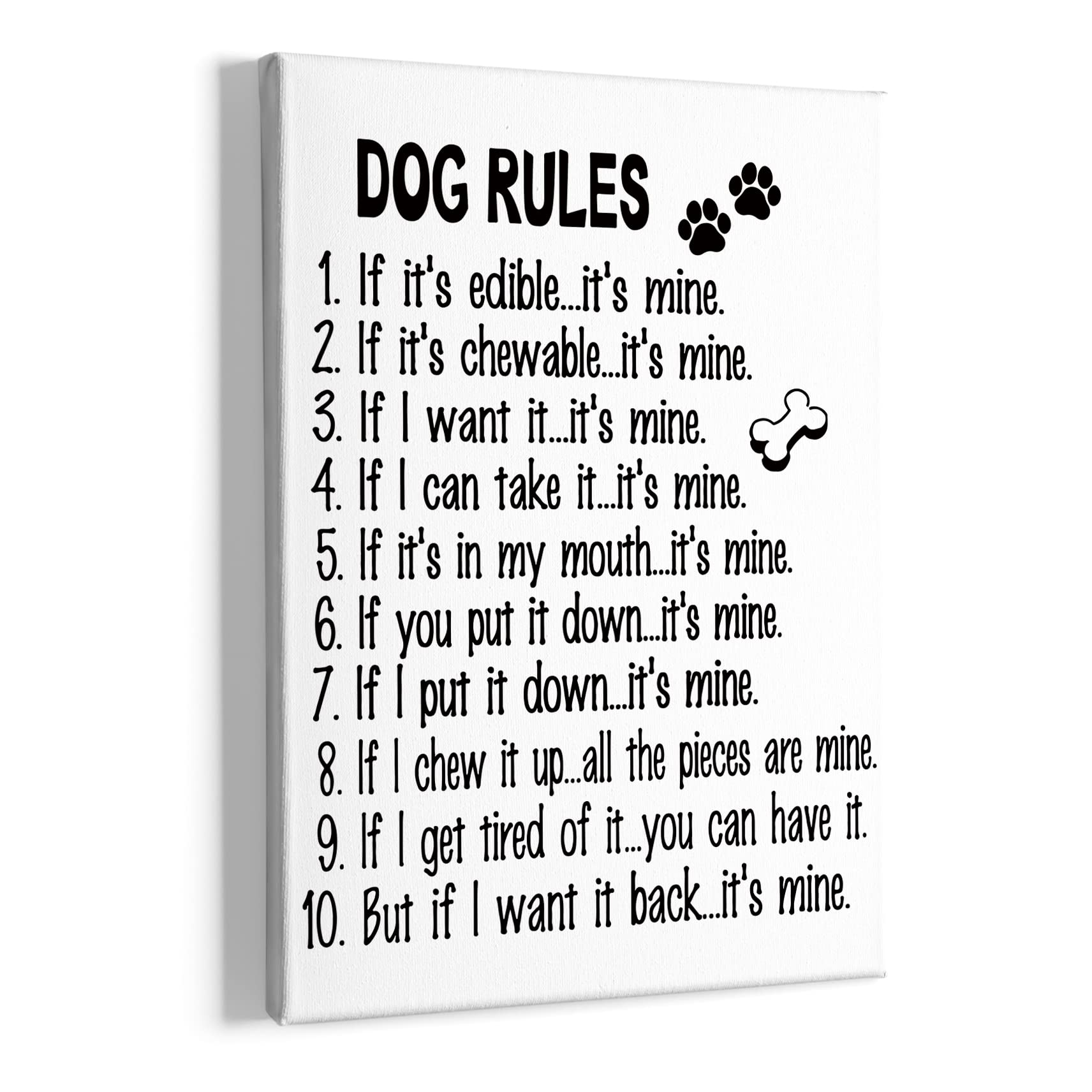 HIWX Funny Dog Rules Framed Canvas Painting Wall Art Decor, Dog Lovers Mom Owners Gifts for Women Wall Art Artwork Home Decoration for Living Room Bedroom Bathroom 11x14 Inch