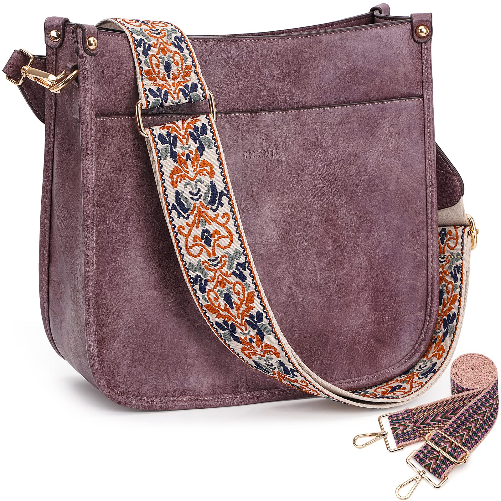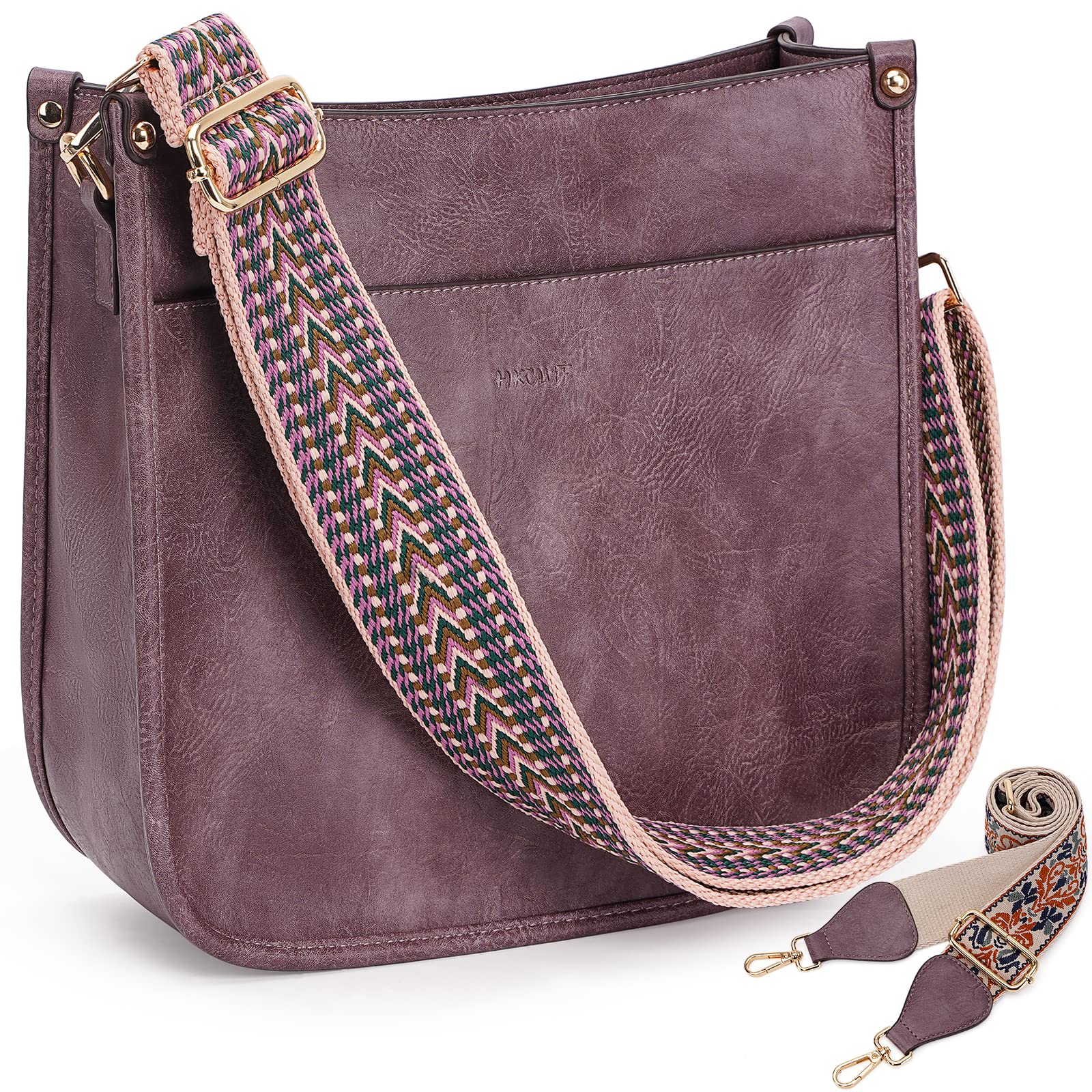 HKCLUF Crossbody Bags for Women Trendy Vegan Leather Hobo Handbags With 2pcs Adjustable Guitar Strap Crossbody Purse For Women(Purple)