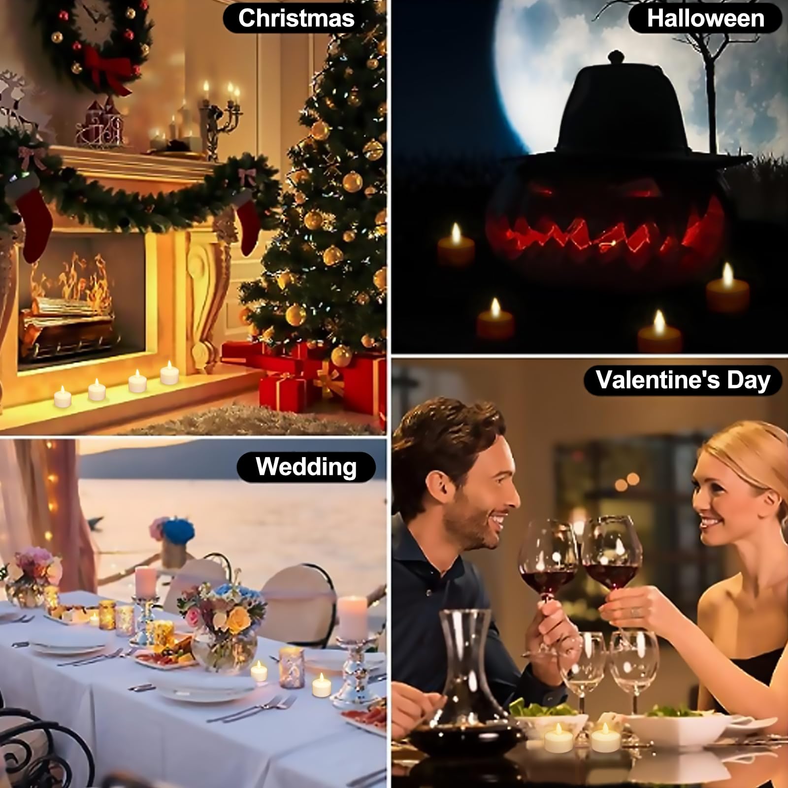 - WIDE APPLICATIONS: Our rechargeable tea lights candles measure 1.57'*1.85' (Diameter*Height), are perfect for any occasion, from romantic dinners to holiday decorations, Centerpiece, Wedding, Anniversary, Table, Halloween, Christmas, Parties, wall Sconces, tea lights/votive holders. Ideal for use as a daily decoration or special event, you'll love the warm atmosphere they bring to your space. NOTE: The Candles will be in Red light when charging, and turn off automatically when fully charged
