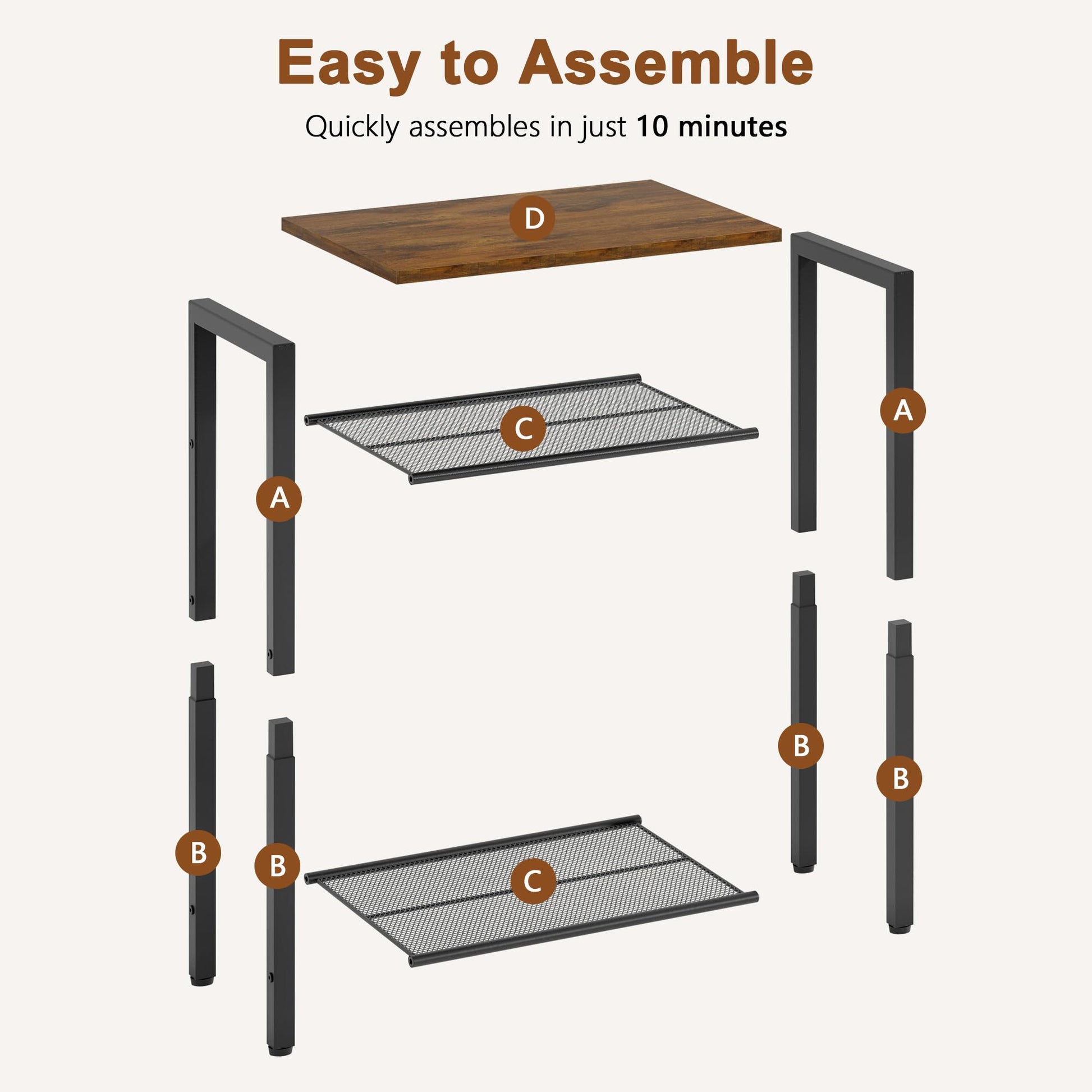 Hoctieon 3 Tier End Table, Telephone Table, Narrow Side Table with Storage, Nightstand for Small Spaces, Metal Frame, For Living Room, Bedroom, Sofa Couch, Hall, Easy Assembly, Rustic Brown