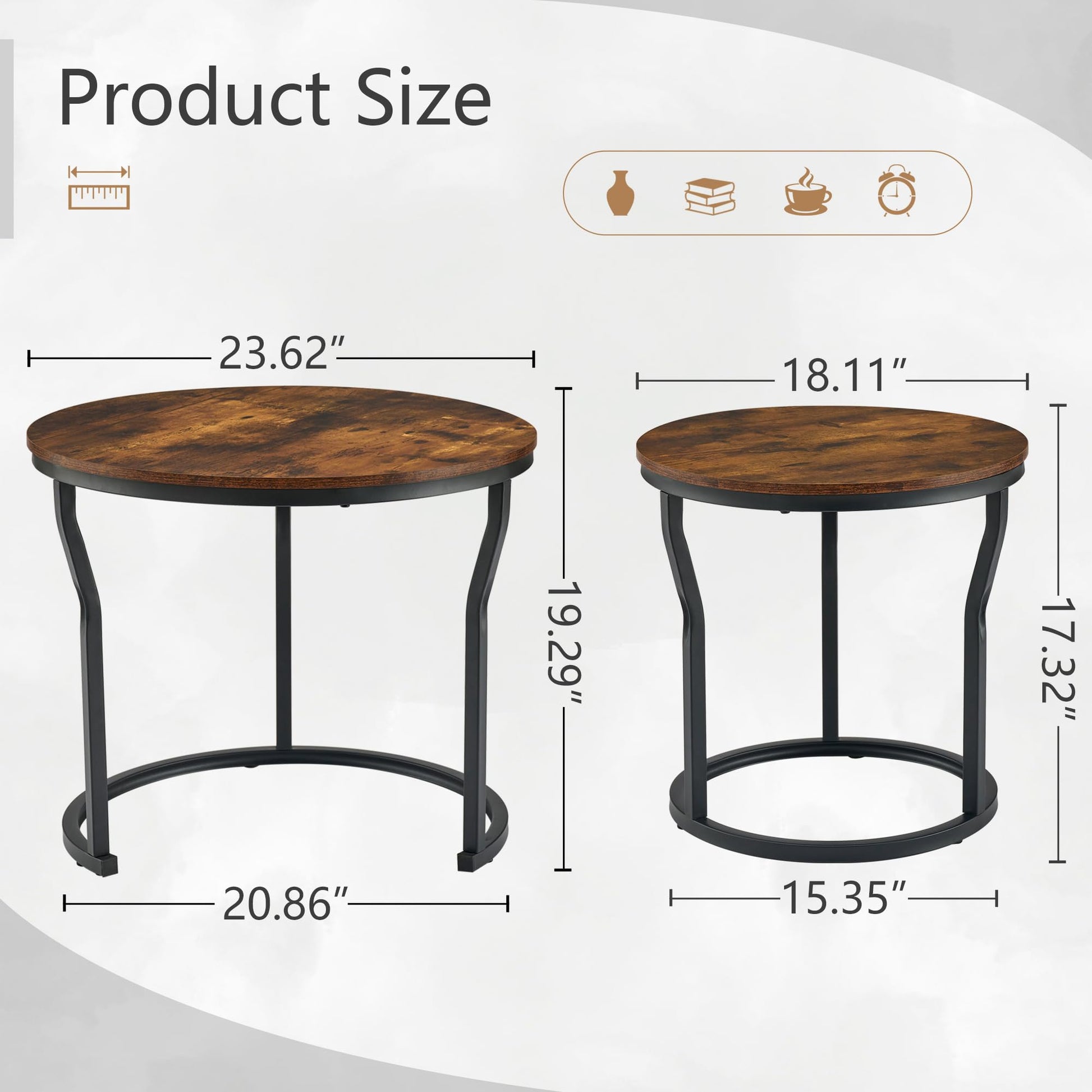 Hoctieon Nesting Coffee Tables, Round Nesting Tables Set of 2, End Tables, Stacking Nesting Tables for Living Room, Circle Coffee Tables, Side Tables Wooden Table Top, Rustic Brown