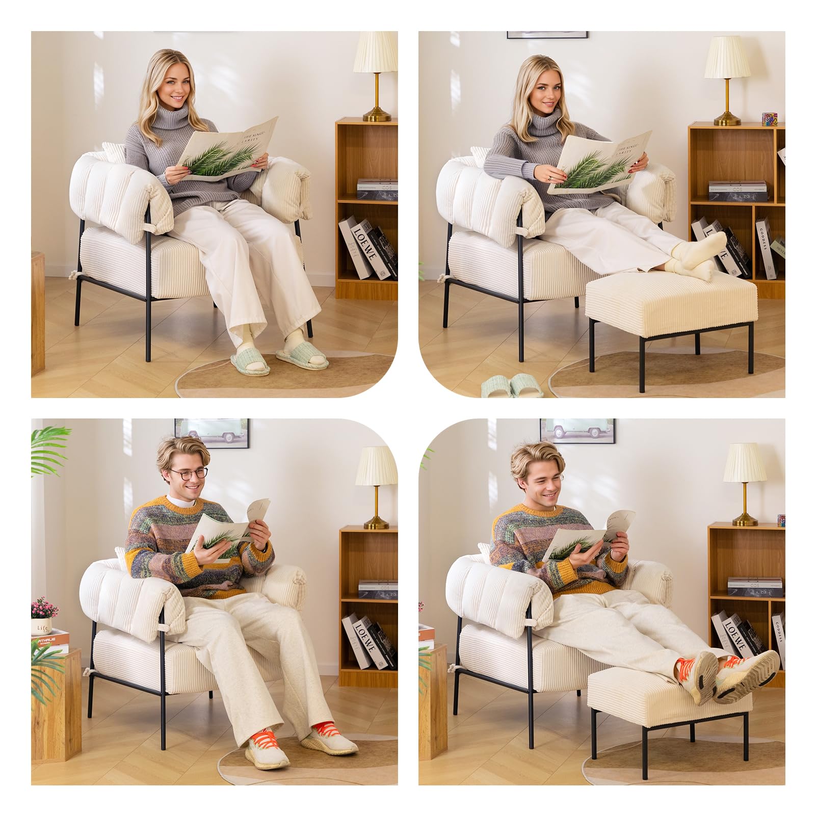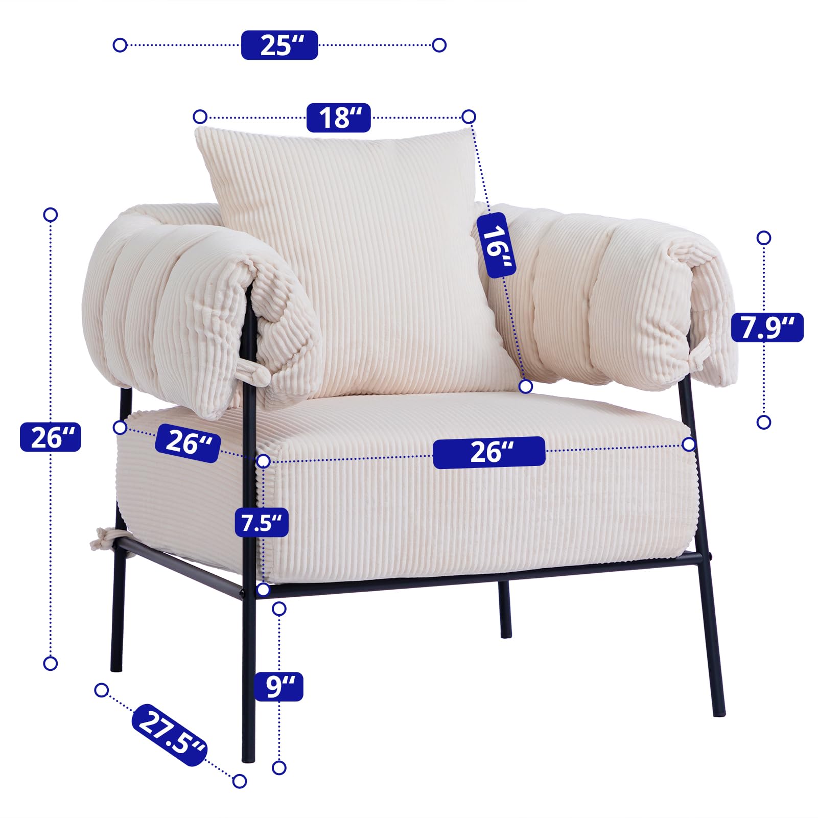 HollyHOME Modern Velvet Accent Chair, Upholstered Comfy Reading Chair, Fabric Large Lazy Arm Chair with Soft Cushion, Metal Frame Lounge Sofa Chair for Living Room, Bedroom, Balcony, Beige