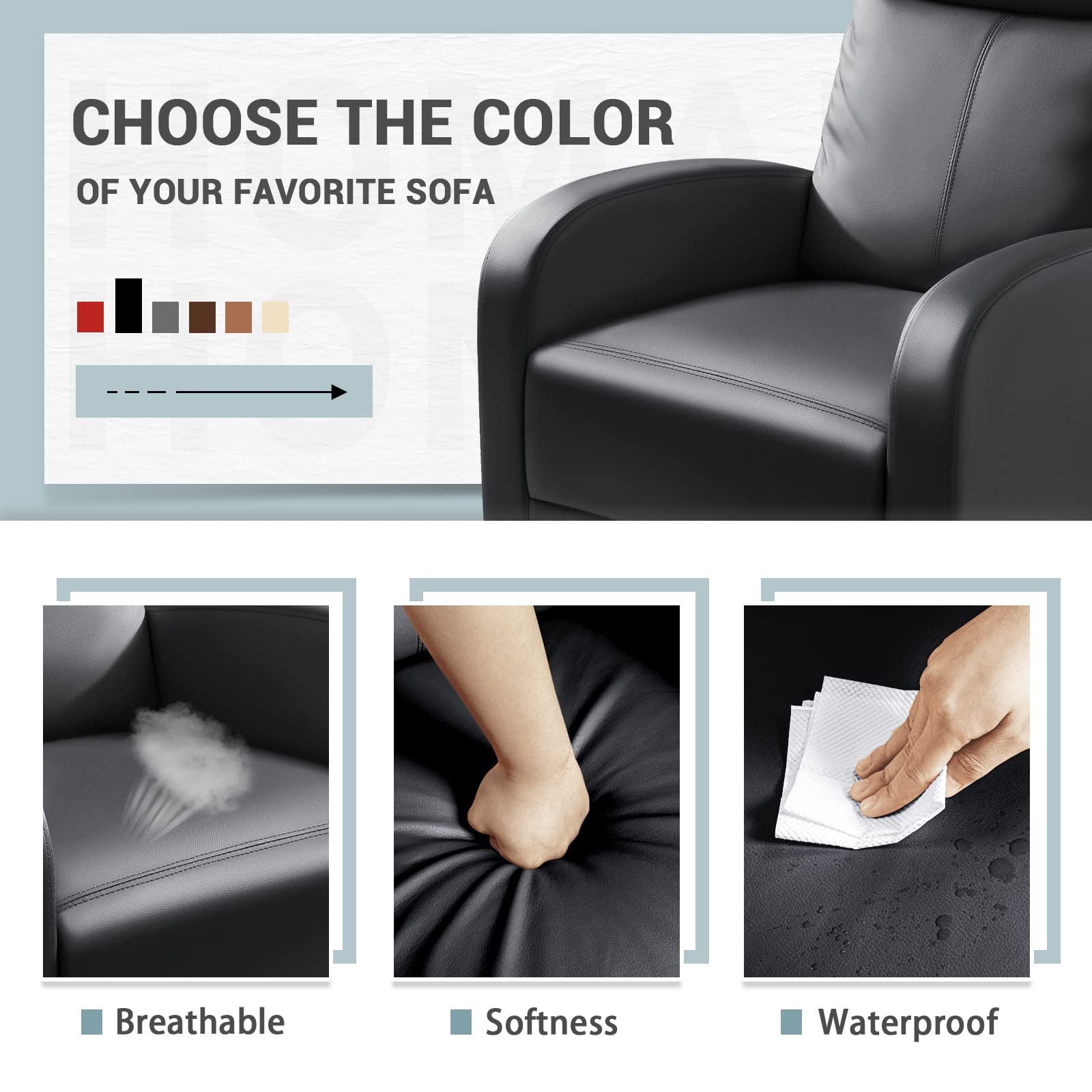 - Foot protection: This single recliner is supported by four sturdy feet with non marking pads which effectively protect the sofa and hard floor