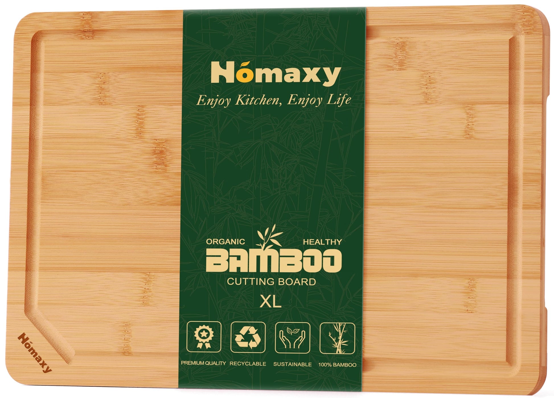 Homaxy Extra Large Organic Bamboo Cutting Boards for Kitchen, 18"x12" Wooden XL Cutting Board with Juice Groove and Handles, Charcuterie Butcher Block Wood Serving & Chopping Board - Pre Oiled