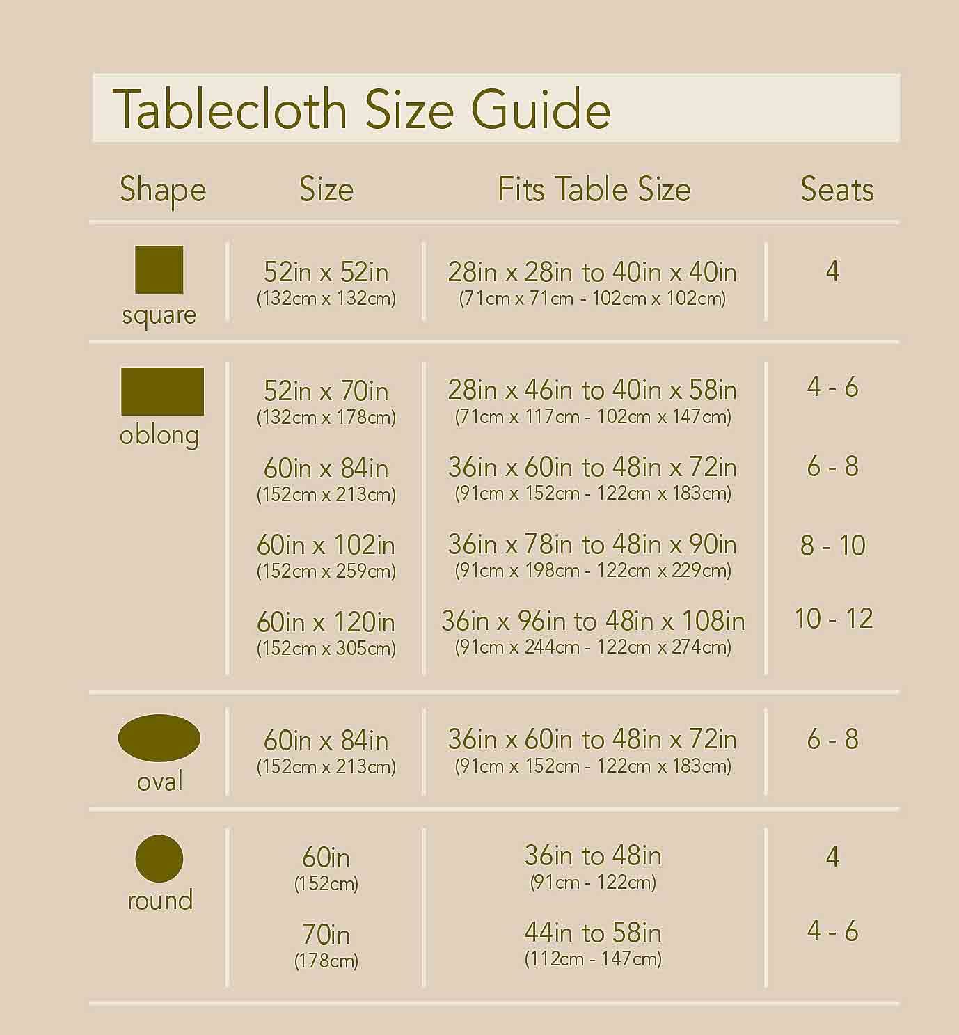 - SIZING: 60' x 84' Oval (152 x 213cm) - Fits tables from 36 Inch x 60 Inch to 48 Inch x 72 Inch and Seats 6 to 8 People - Oval