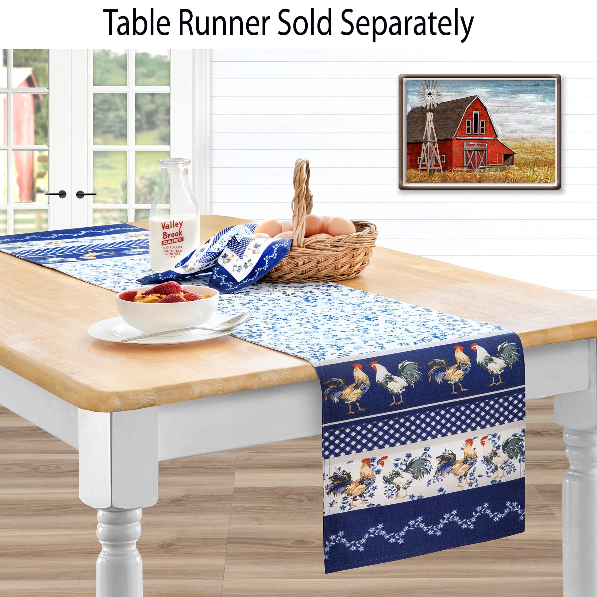 - Home Bargains Plus Blue Provence Rooster Bordered Fabric Tablecloth, Stain and Water Resistant, Wrinkle Free Country Tablecloth, 60” x 84' Oval