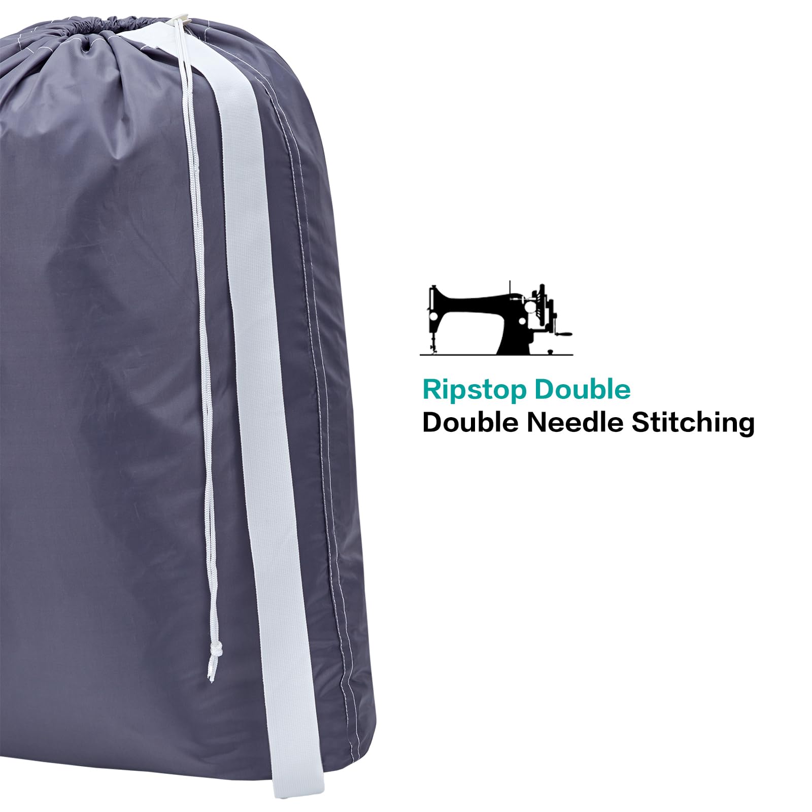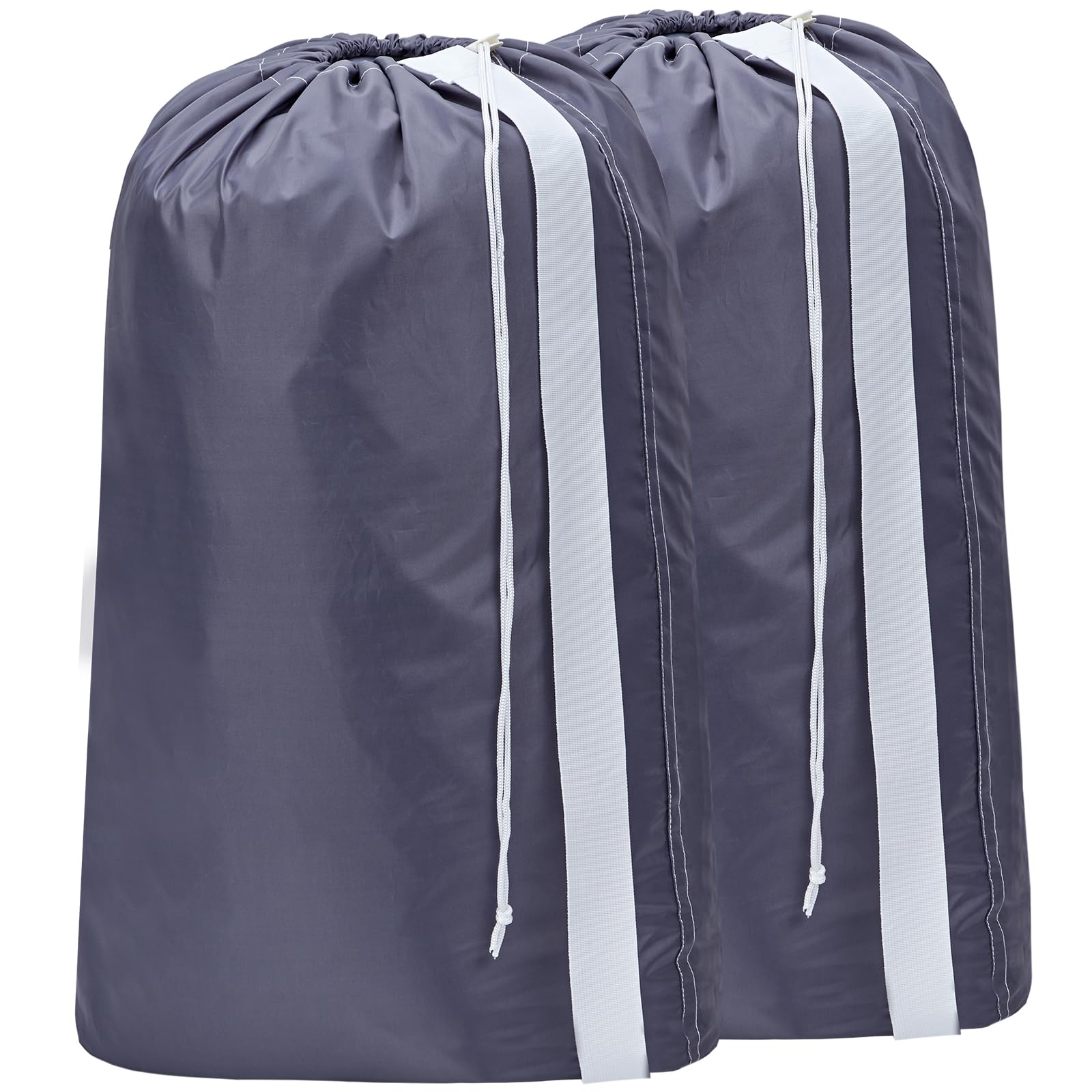 HOMEST 2 Pack XL Nylon Laundry Bag with Strap, Large Dirty Garments Organizer, Easy Fit a Hamper or Clothing Basket, Can Carry Up to 4 Loads of Clothes, Grey