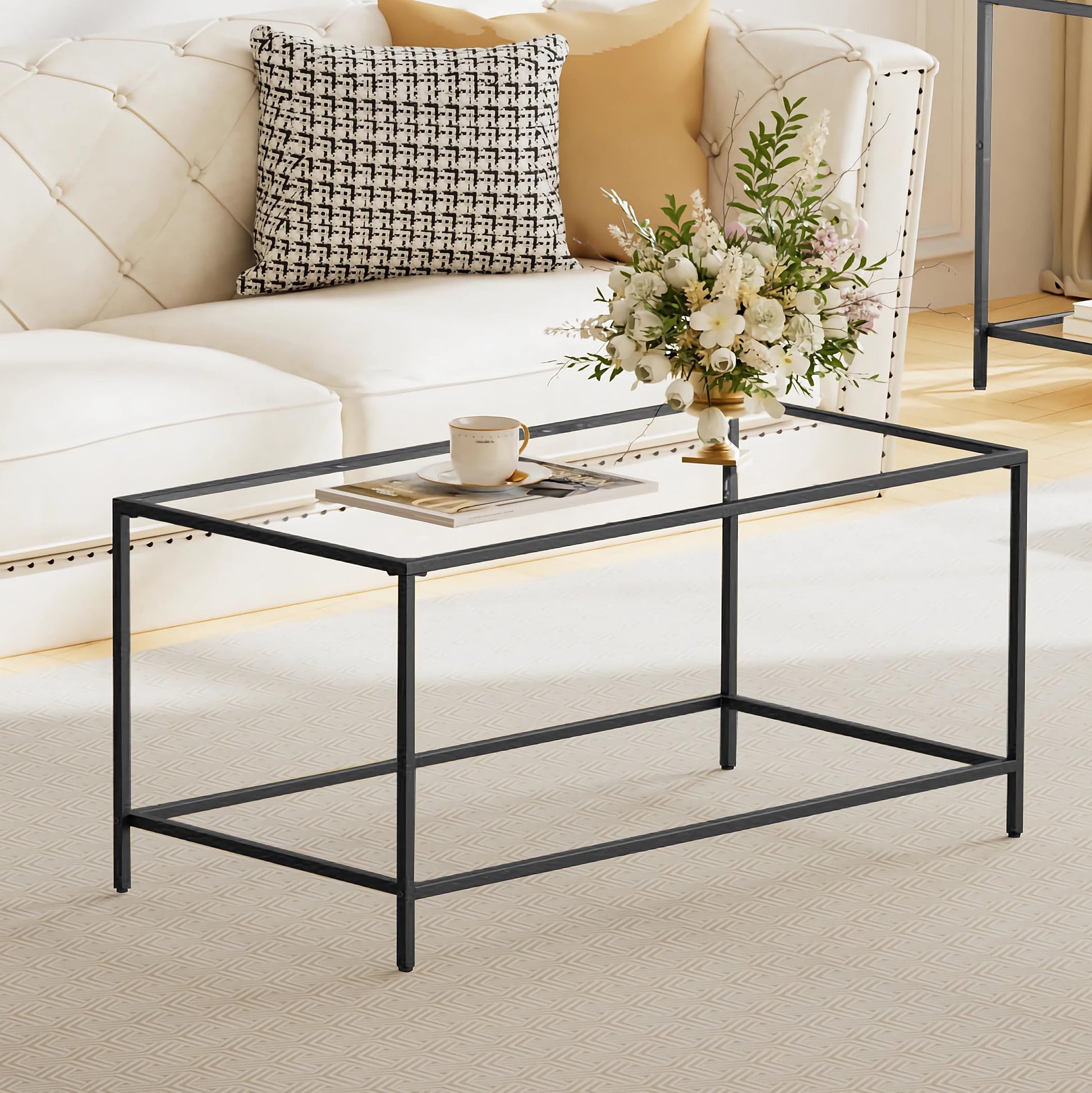 Homleke Glass Coffee Table, Modern Rectangular Black Coffee Table for Living Room, Minimalist Center Tea Table with Sturdy Metal Frame for Apartment, Office, Dining Room, Easy Assembly, Black