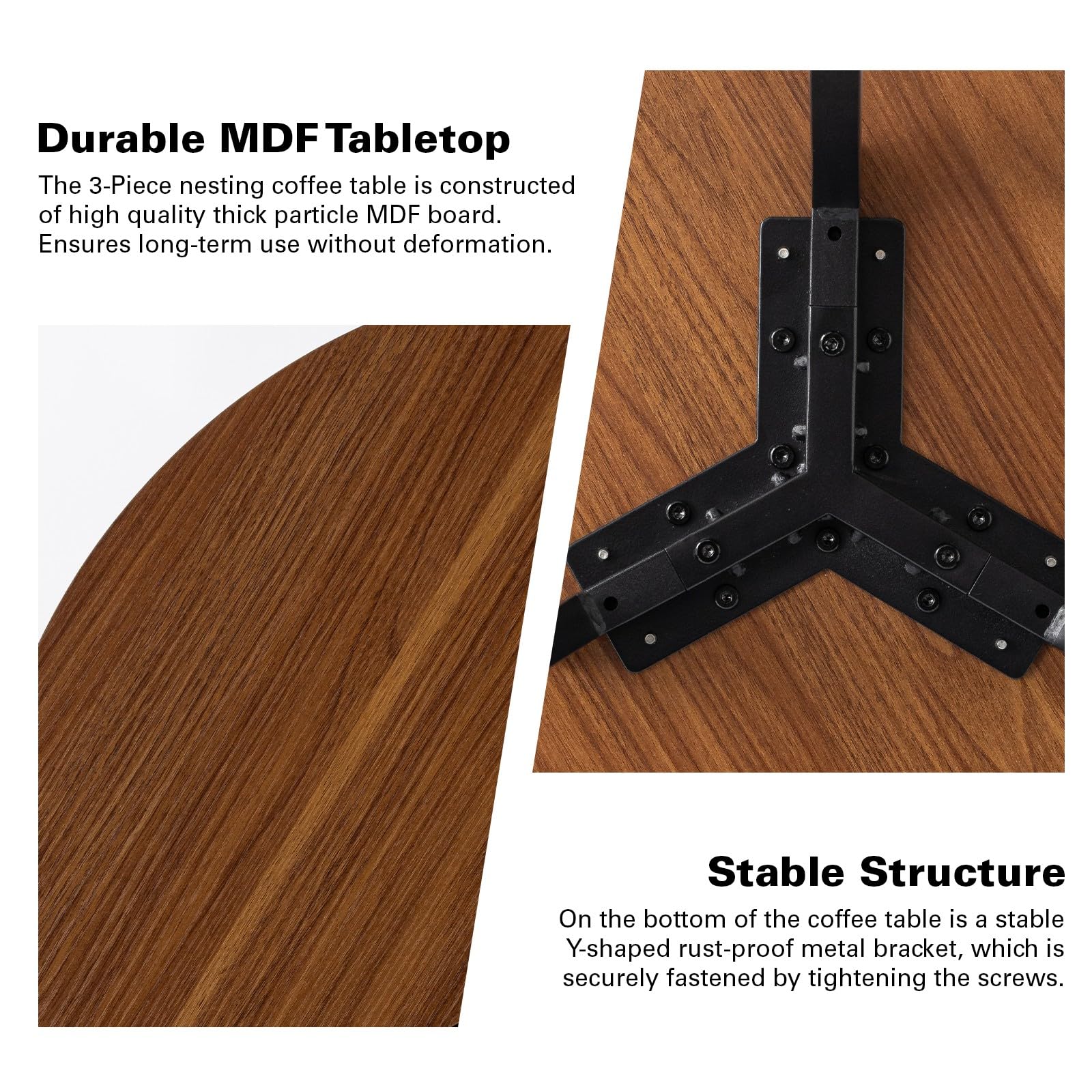 - [Stable & Durable Living Room Tables] The desktop of nesting coffee table is made of high-quality MDF density board, which ensures long-term use without deformation, and is waterproof, scratch-proof and collision-proof, which can perfectly resist daily wear and tear. MDF is more environmentally friendly than wood.