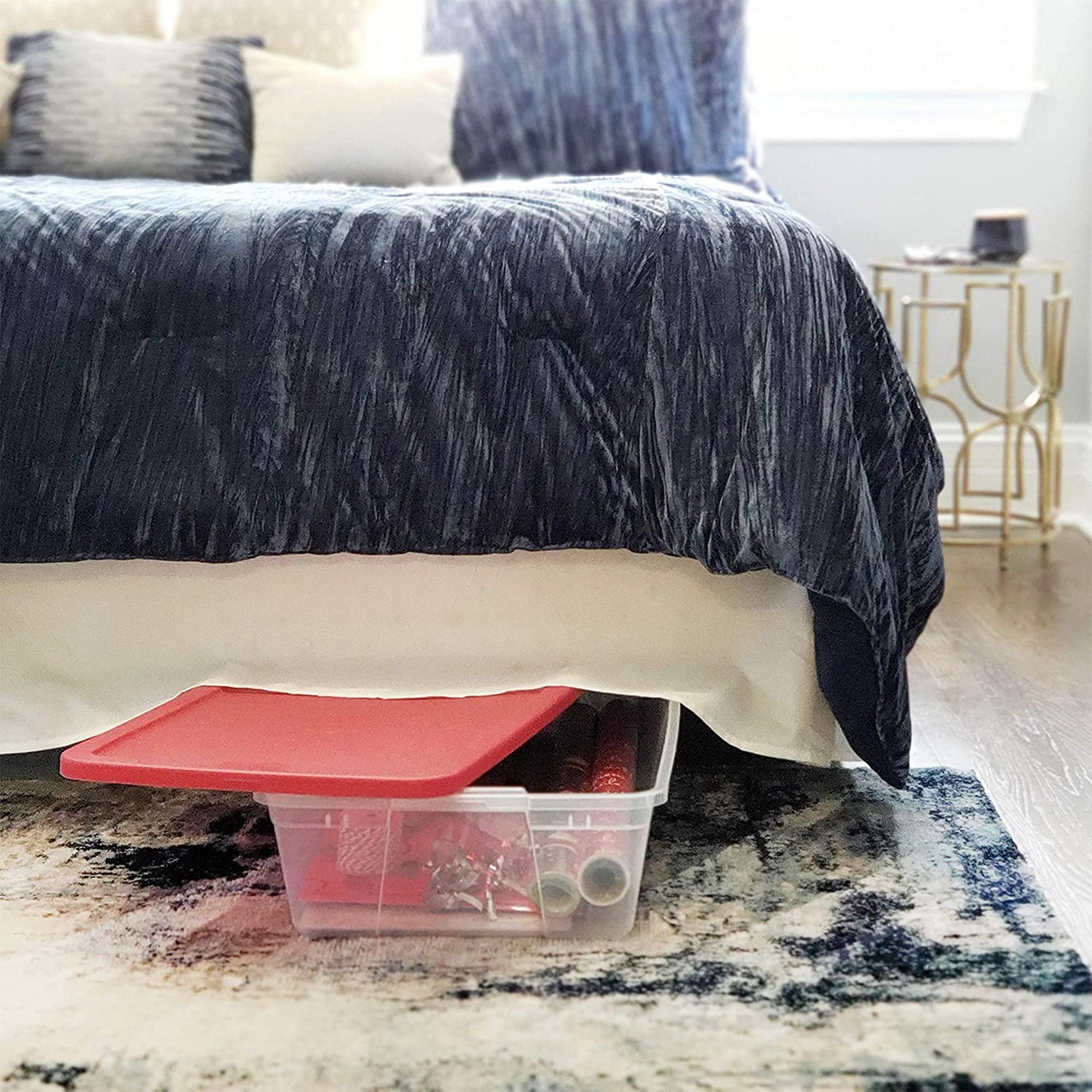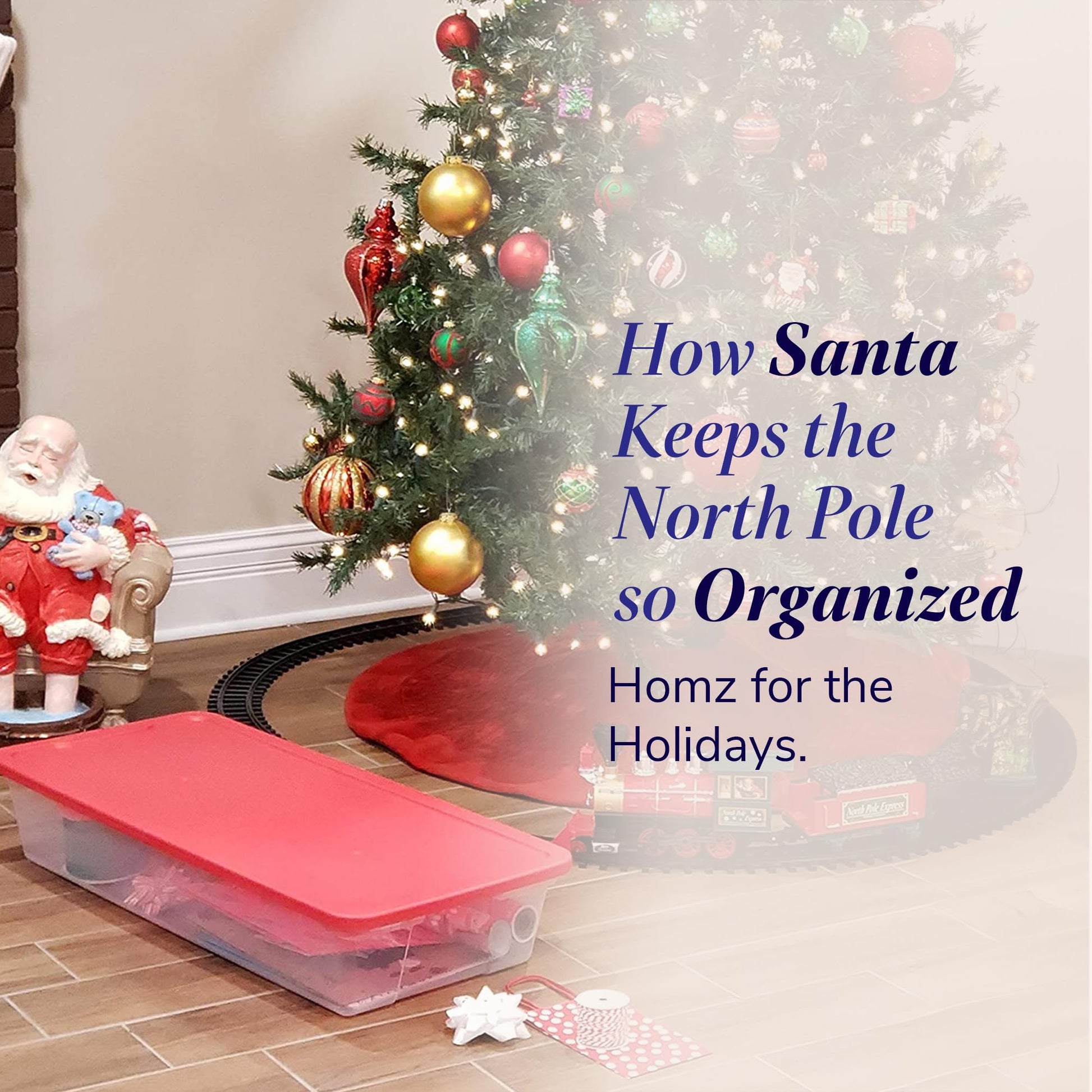 HOMZ 2-Pack Holiday Tote, Clear Plastic Storage Organizer Bins with Lids, 41 Quart, Red - Stackable Organizing Containers for Christmas Ornament Decorations, Gift Wraps, and Crafts