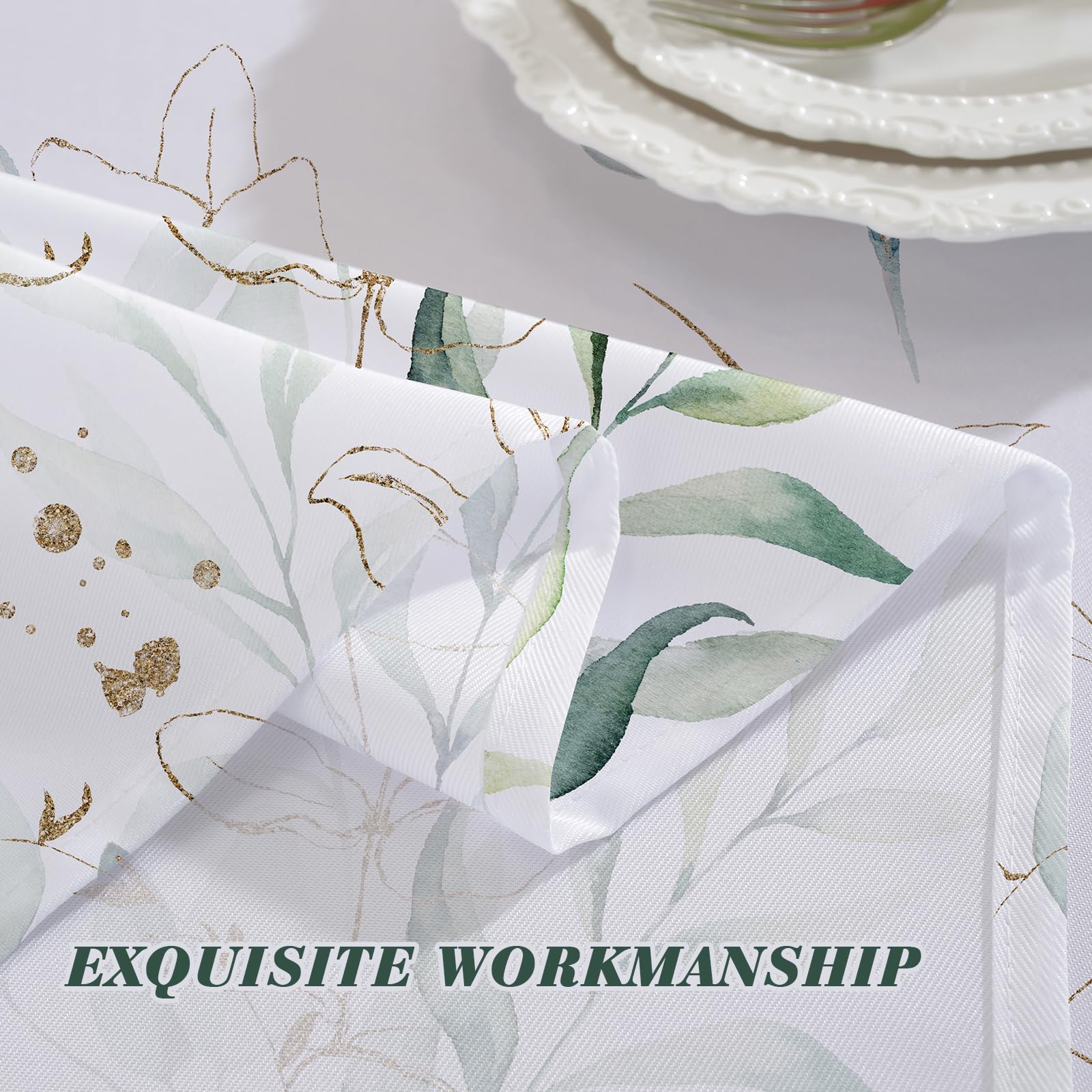 - Wrinkle-Resistant & Machine-Washable: Maintains crisp appearance even after storage. Simply toss this eucalyptus leaves table cloth in washing machine (cold gentle cycle) and air dry. Colors stay vibrant wash after wash.