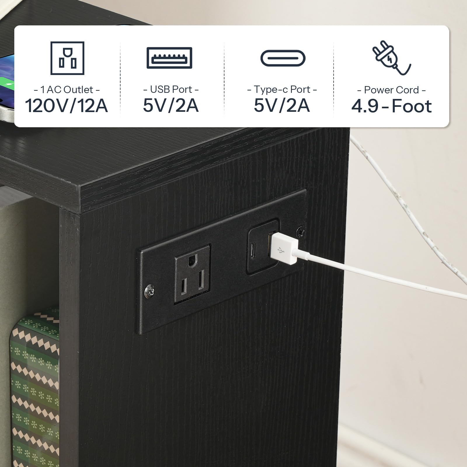 - Versatile Charging Hub: This narrow side table includes 1 AC outlet, 1 USB port and 1 Type-C port, meeting all your electronic devices' charging needs. It offers a safe and convenient charging experience without the need for extra outlets