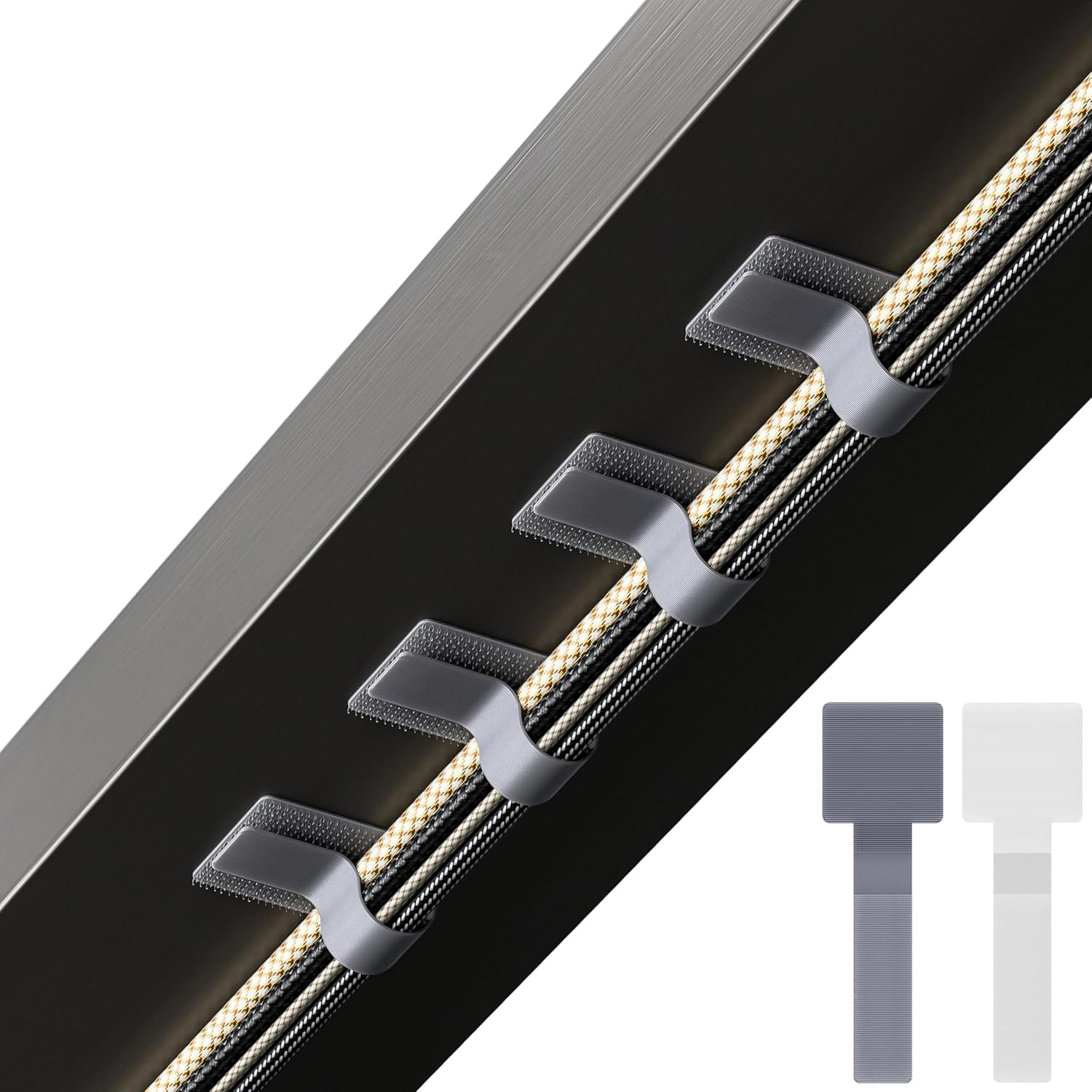 Hook and Loop Cable Ties, Self Adhesive Hook and Loop Cable Straps, Sticky-back Cord Organizer, Cable Clip, Household & Office Essentials, 40Pcs per Pack