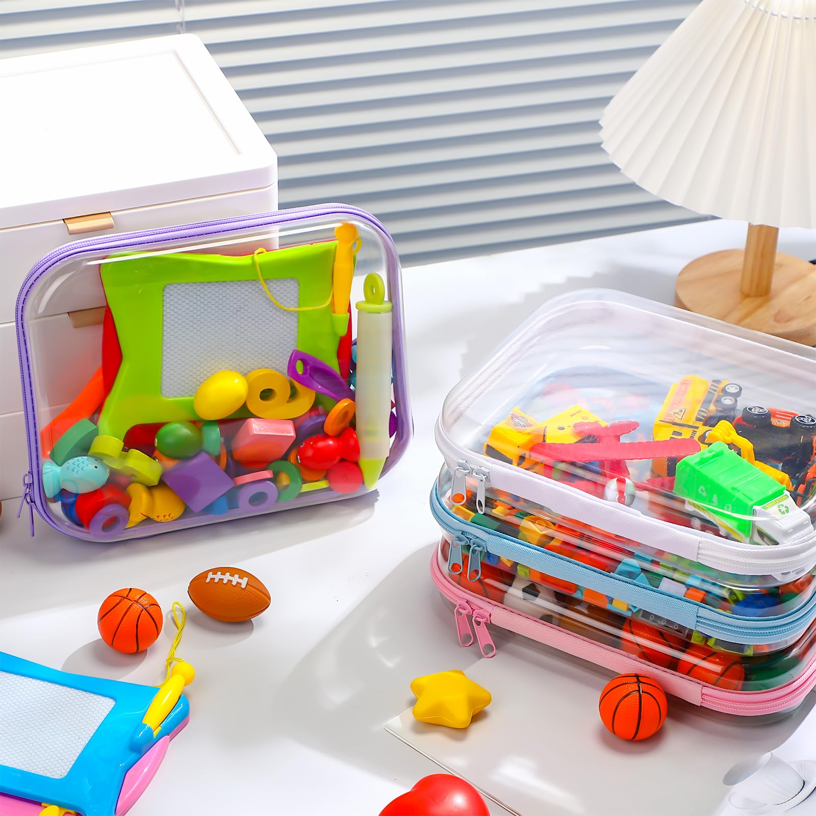 Hoolerry 4 Pcs Hard Clear Zipper Case Transparent Cases for Snacks Makeup Bag Plastic Storage Box Containers for Building Blocks, Puzzles, Cosmetics (Multicolor,9.8 x 7.9 x 2 in)